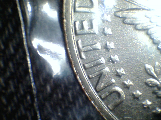 ok first. on the obverse the left side is thinner than the right but when i flip it the left is wider than the right. or is that normal? also on other misaligned dies i have gotten on pennies and the rim is the same height. this one is raised. is it because its bigger? as for the face...this was my first attempt at a split pic. hope it shows what i mean by the slant