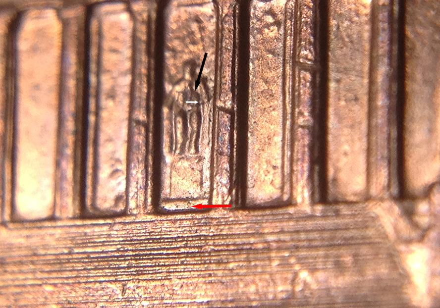 I put in a few arrows to point out the errors. the red arrow is pointing to what looks like an E? the white arrow is that doubling or a plating issue? and the black arrow is pointing at Lincolns chest is this normal?