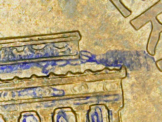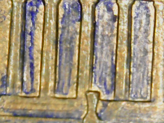 I think it’s PMD. Looks like somebody took a fine ball point pen and “colored” in the columns. Most of the ink is gone now. I just tried this on a Zlincoln and got a similar effect with only moderate pressure (sorry can’t get good pics). Try it yourself and see if you can duplicate the damage