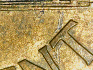 I think what you have is an inspection coin. Every once in a while, a coin is pulled out of production and inspected for errors. Once inspected, the inspector throws the coin back into the batch.