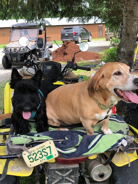 Frank that is Black Jack, he is our neighbors little guy and he loves to ride on the ATV's with Bud...Thanks for asking...