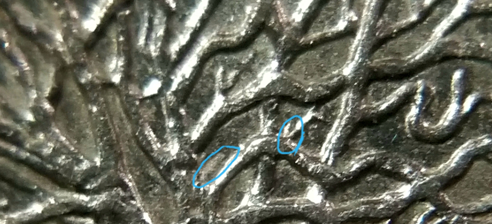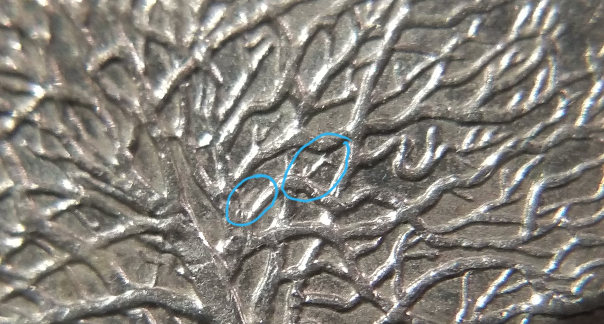 the left circle you placed....that looks like what was described as the doubling. I feel your pain....its like your camera hates you but it looks like that extra branch is there.