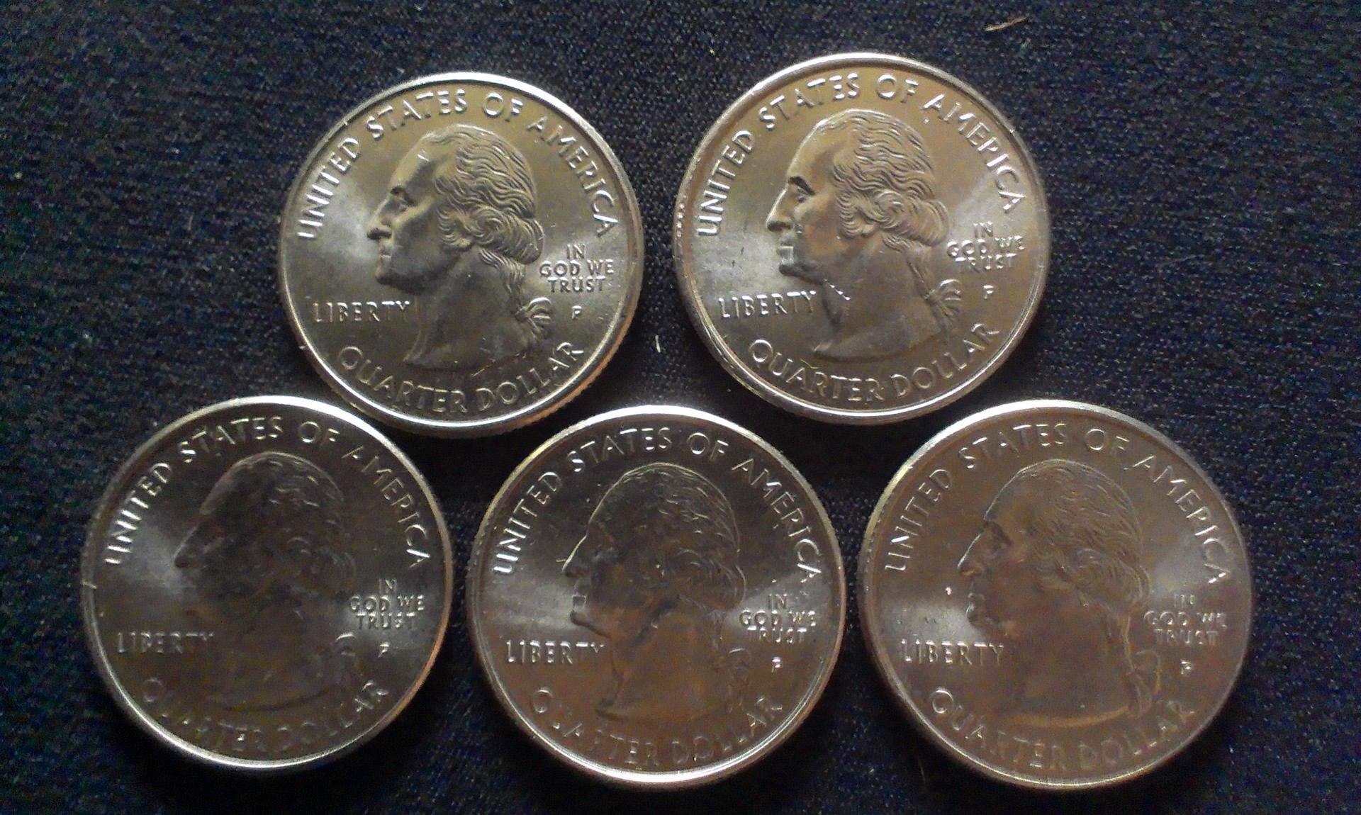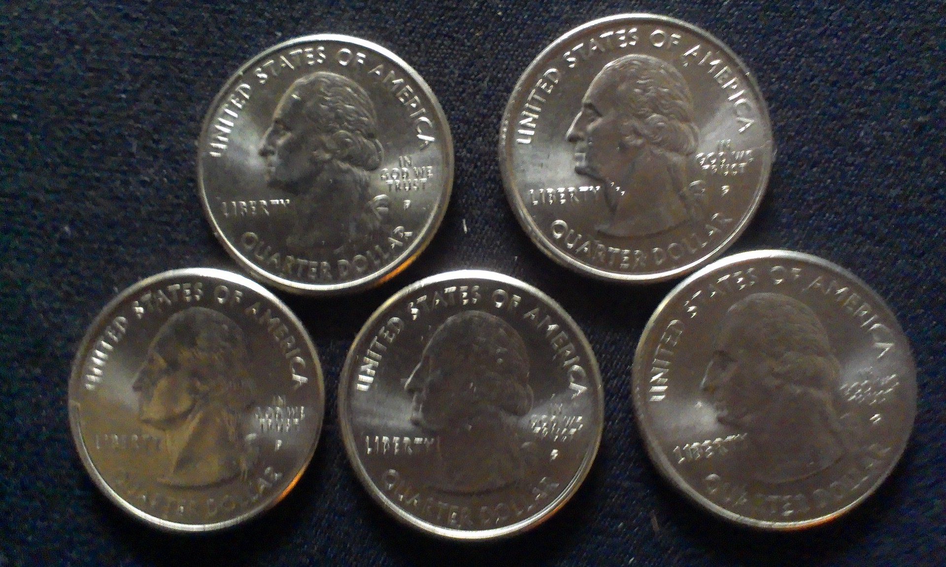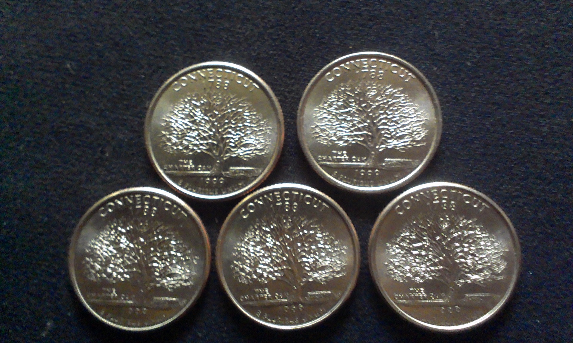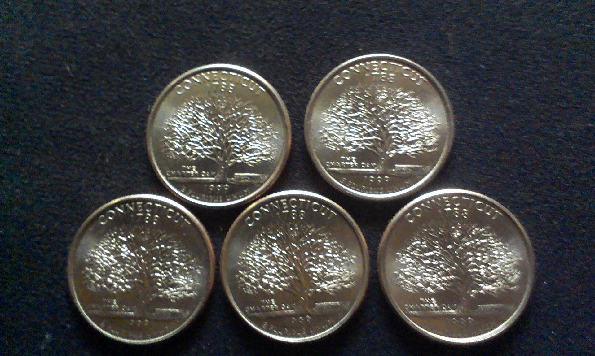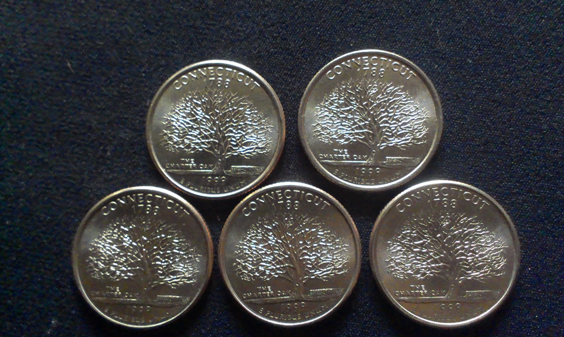 Hello. I am new here, but read threads often. I work in a retail store and I am at the register a lot. I've come across some pretty interesting coins. My latest find is probably the weirdest. Someone brought in a roll of quarters to pay for a pack of cigarettes. My co-worker needed the change right away so she cracked it open. All that fell out were 1999 P Connecticut state quarters...all of which appeared to be stamped very oddly. Some appeared off center slightly and some appeared to have a very deep stamp. The ridge along the outer edge rises very high above the image and in some of the coins, the ridge is on an angle and rounded off (hard to explain). On the upper left portion of most of the ones I got, looks to be double stamped? You can see in the pictures (which aren't the best) where that portion of the edge has almost a jagged edge to it. I picked out all the ones I thought might have been the best as I didn't have $10 at the time to buy them all! I have enclosed photos, but I will have to wait until later to get better ones. (Note: my camera appears to make them have a goldish tint. They are regular colored so far as I can see). If you need anymore info from me, I will do my best to provide.