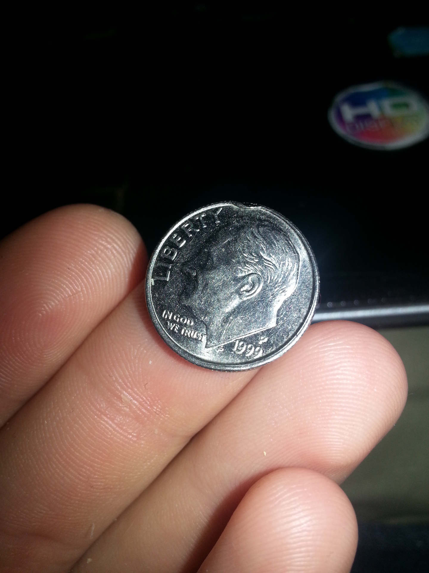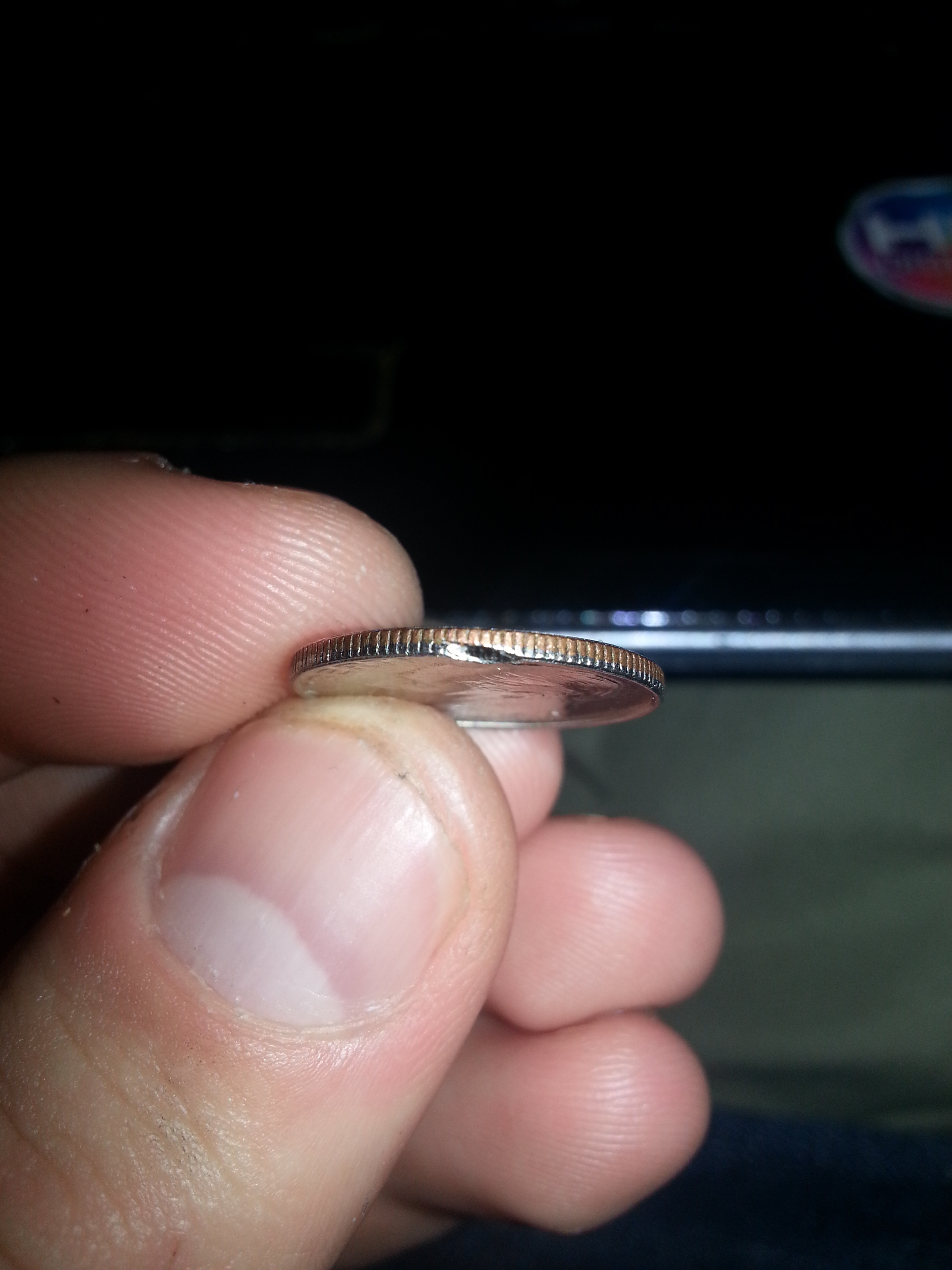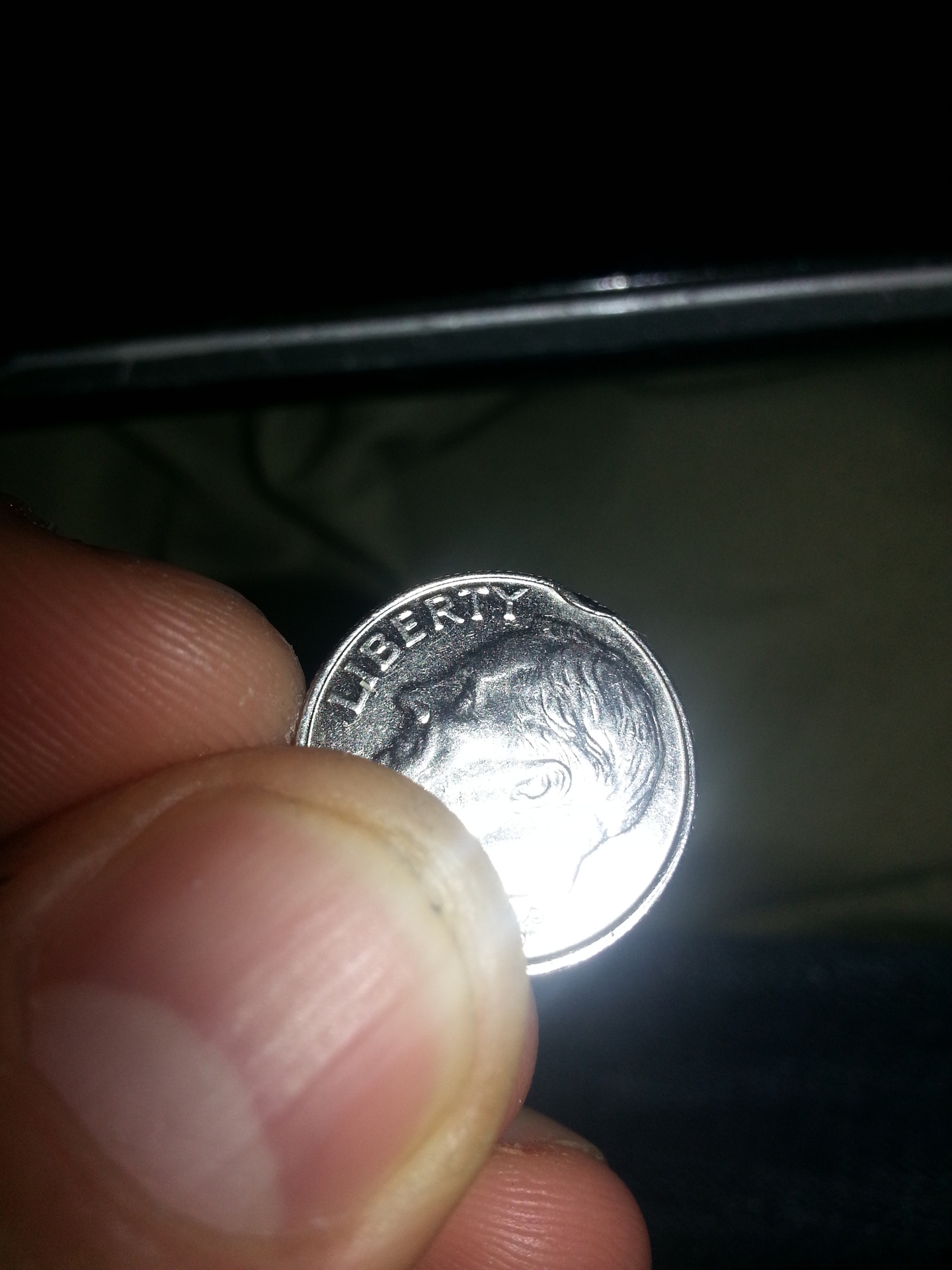 hello guys and girls im very new to the whole coin error thing, i usually just search for coins that have silver content in them but if i see coins that are possible errors i just throw them in a jar i looked all over online and could not find something that looked like this, i would normally think the coin had a hard life and got a big nick in it but the nick just seems to clean also the side of the coin looks like it is there but almost seems like it got melted or something, do i have anything rare or should i just throw this in my rainy day fund, thank you for your time