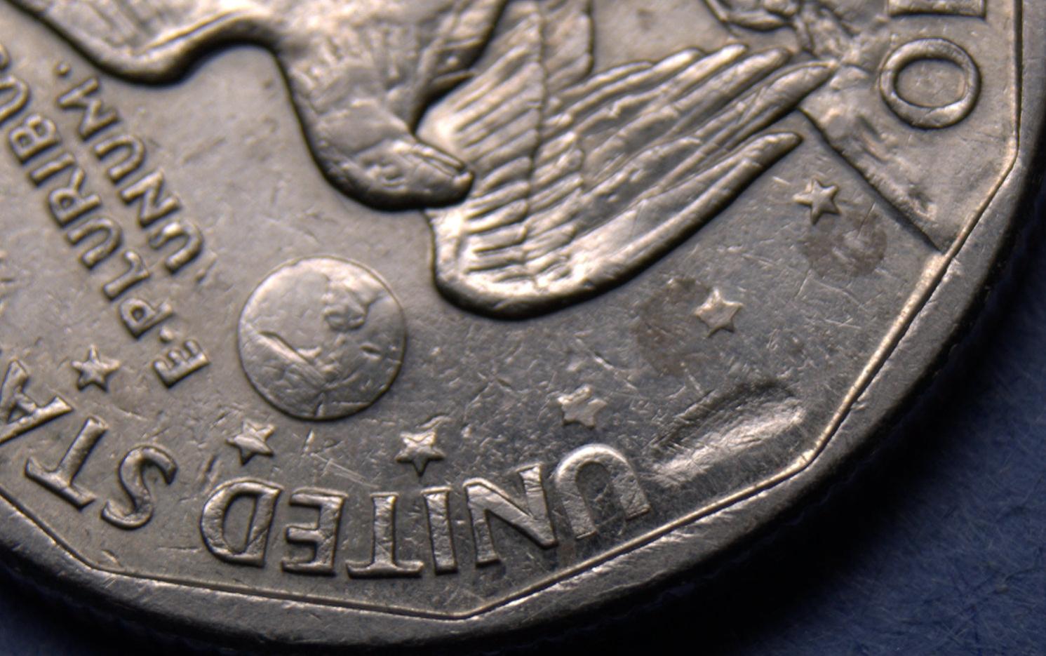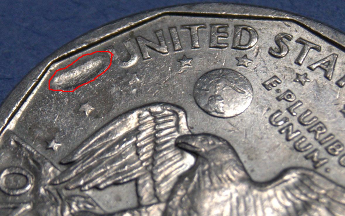 I'm thinking that a hit came from the direction of the wing, pushing up some of the metal making a slight rise toward the edge of the coin.