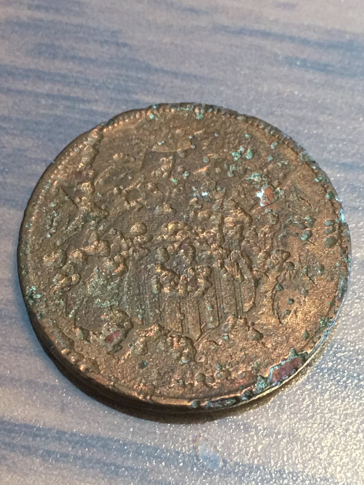 Hello again. Something about this 2 cent piece intrigued me. Looks like it has environmental damage, parts of the design appear to be raised. Is this coin just a product of corrosion? Thanks for your consideration! This site is an extremely valuable resource for collectors.