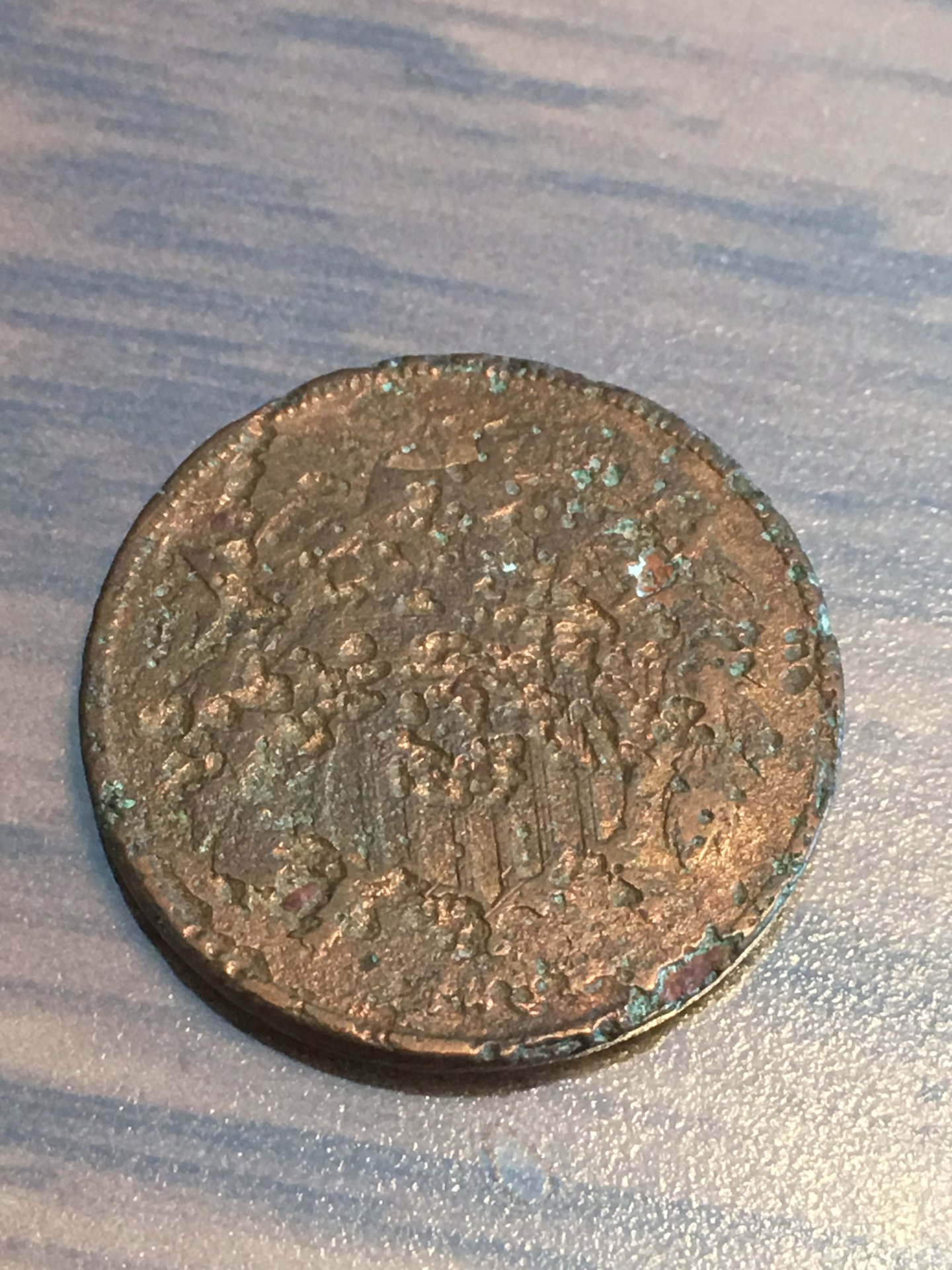 ...but not major enough, from the number of pits still occupied by green stuff. Yep, looks like ground acids have been gnawing on it since soon after it was minted.