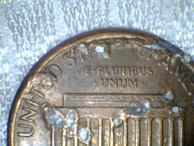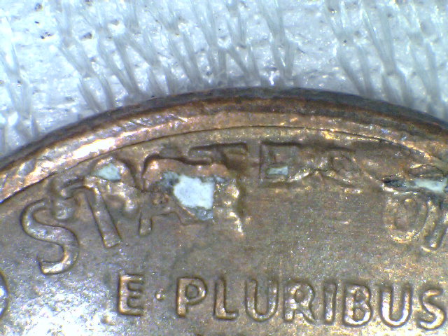 the first 4 pics are from one coin. are the holes from gas bubbles? what are the globs of metal? missing part of ES in states. last pic, 2nd coin, at the MM?