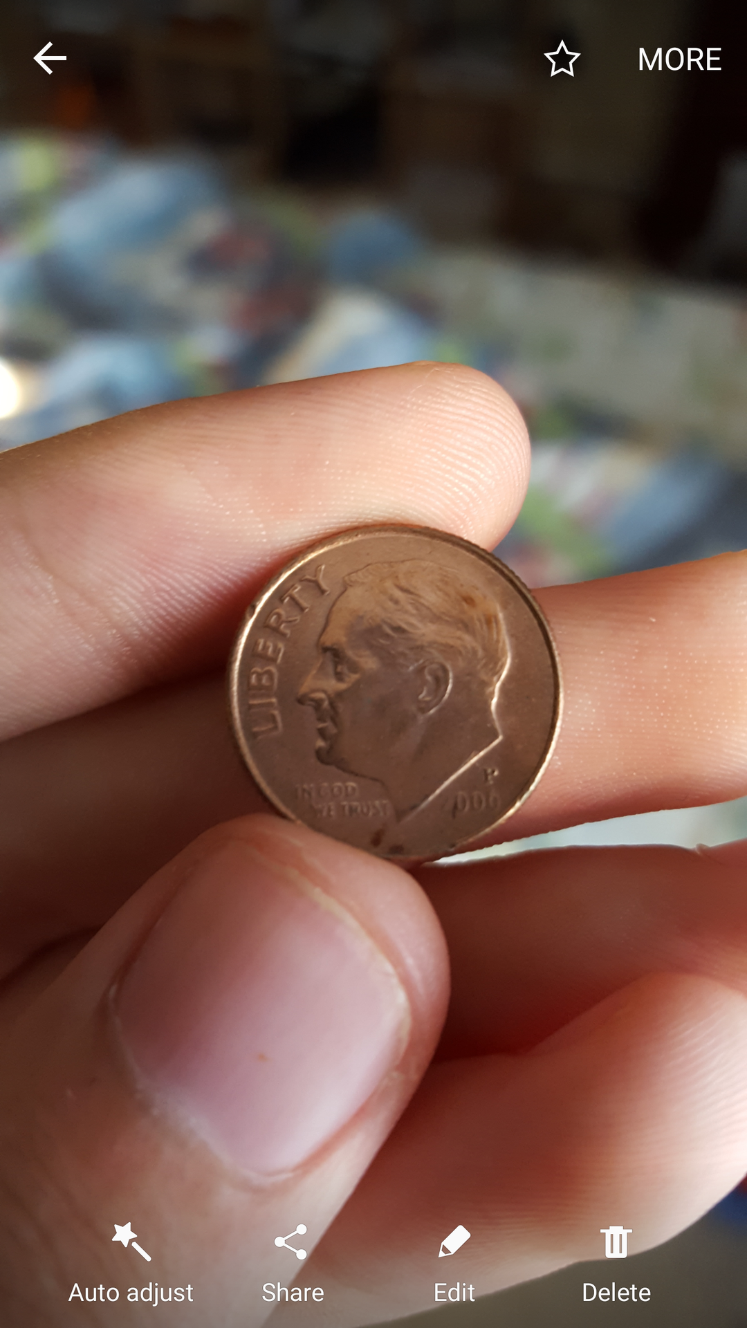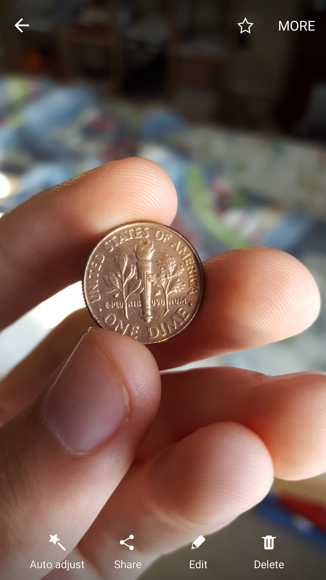 Sadly I can not measure anything to a tenth of a gram. I have a food gram scale right now, but it's being finicky for some reason. As you can see in the first picture, the mystery dime is a bit thinner than a new dime. Not sure if that helps. Also, I found this picture online that looks pretty close to the color of my coin. Any other tests I could do? Then I drop the coins, the one I think is missing the clad layer, sounds a little more high pitched than a regular dime. Not noticeable to anyone not listening for it