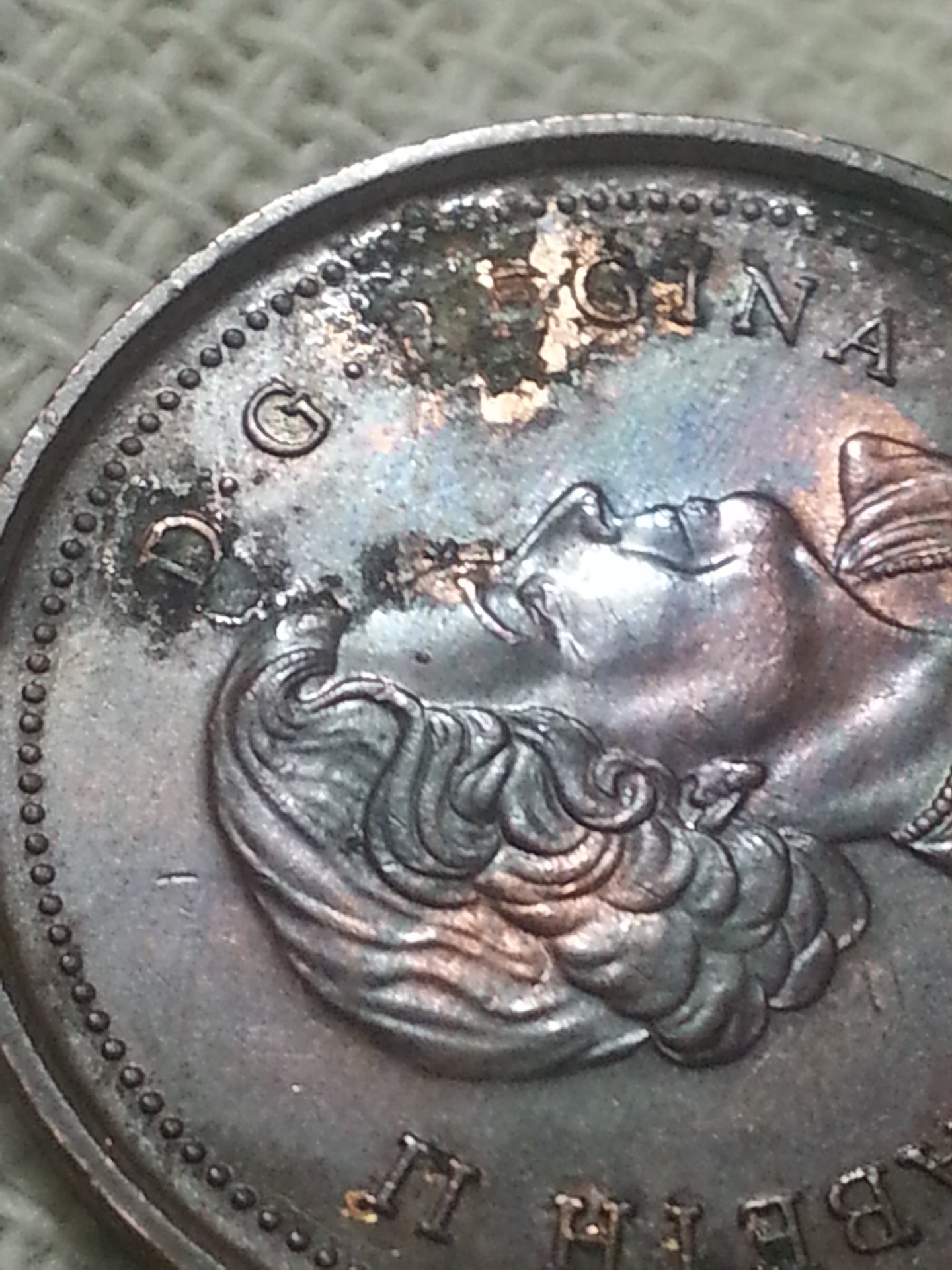Here's a coin with many doubles as in letters and definitely 2 P one where it belongs on 2003 penny and other on right of queen and again. This has a very Black substance over it as well as plenty other errors coins I will submit later tonight the thing that gets me is all these blackend coins didn't all come from the same store but seems like mint had something to do with it.... here is also 2006