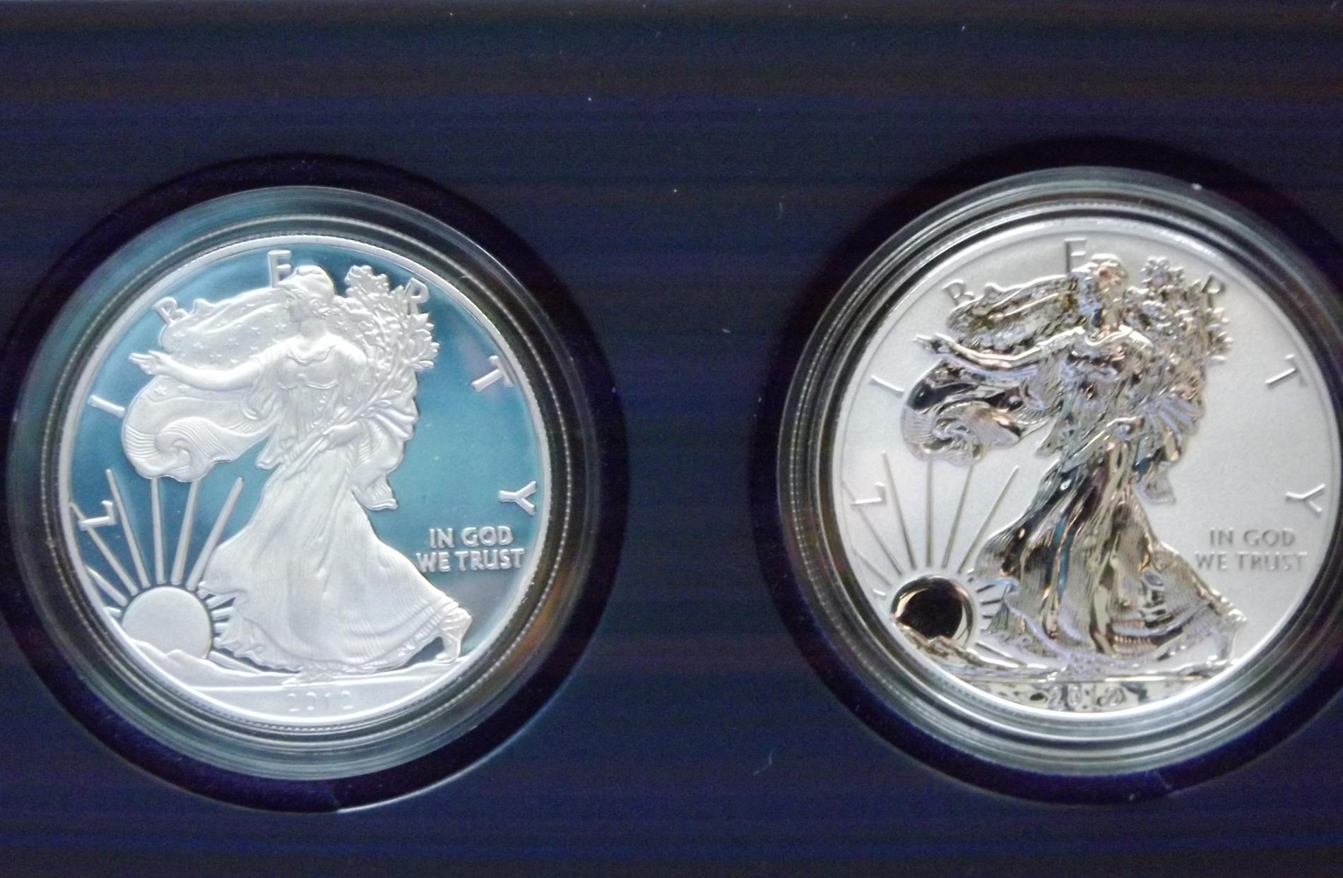 I got my coins last Friday Even before I opened the box I was surprised at the weight. I was thinking why is this so heavy for just 2 coins and some packaging. I opened the delivery box, pulled out the set, and opened it. The tray that the pops out weights quite a bit not counting the weight of the coins themselves.