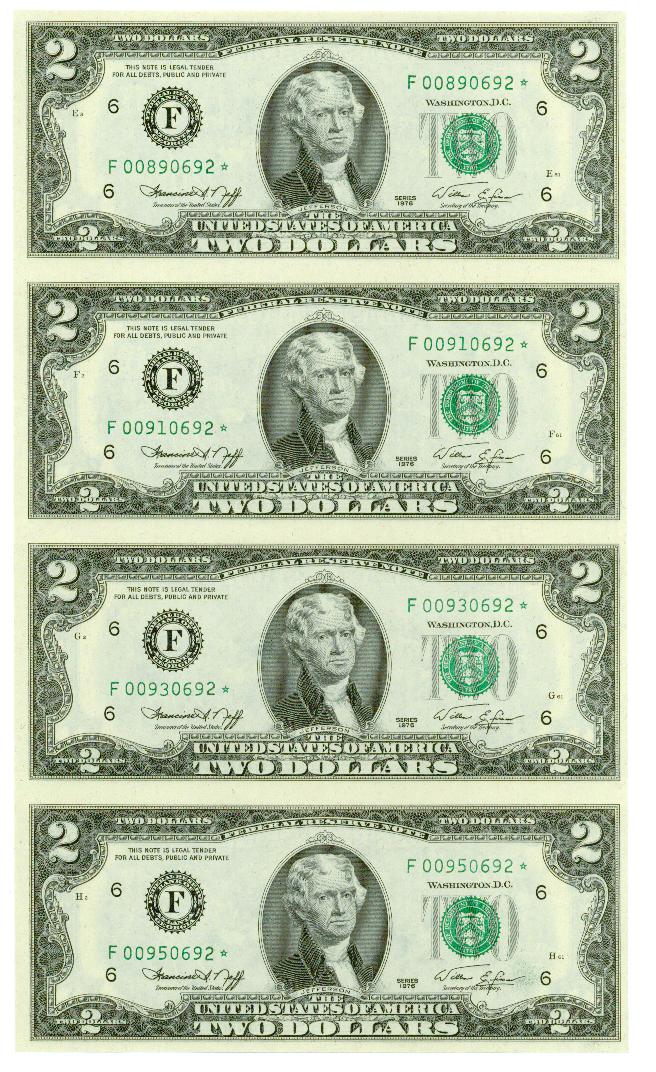 I'll be the first to accuse you of stealing — BEP sells current Series 4-Specimen Uncut sheets of $2 FRNs for $24.00! One Series 1976 F-Star (in the condition of your sheet) is worth at least $18.00. I think you did just fine!