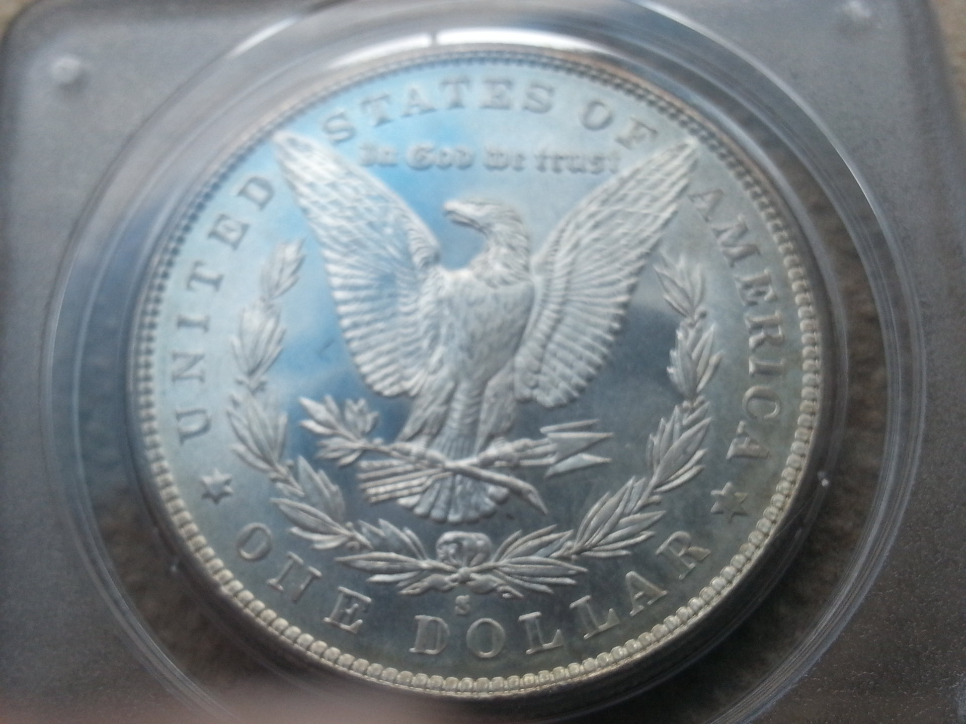 PCGS--》65...could be a 66 today PCI--》64...that one mark to the left of the nose keeps it out of a 65/66 holder Both are tremendous looking Morgans!