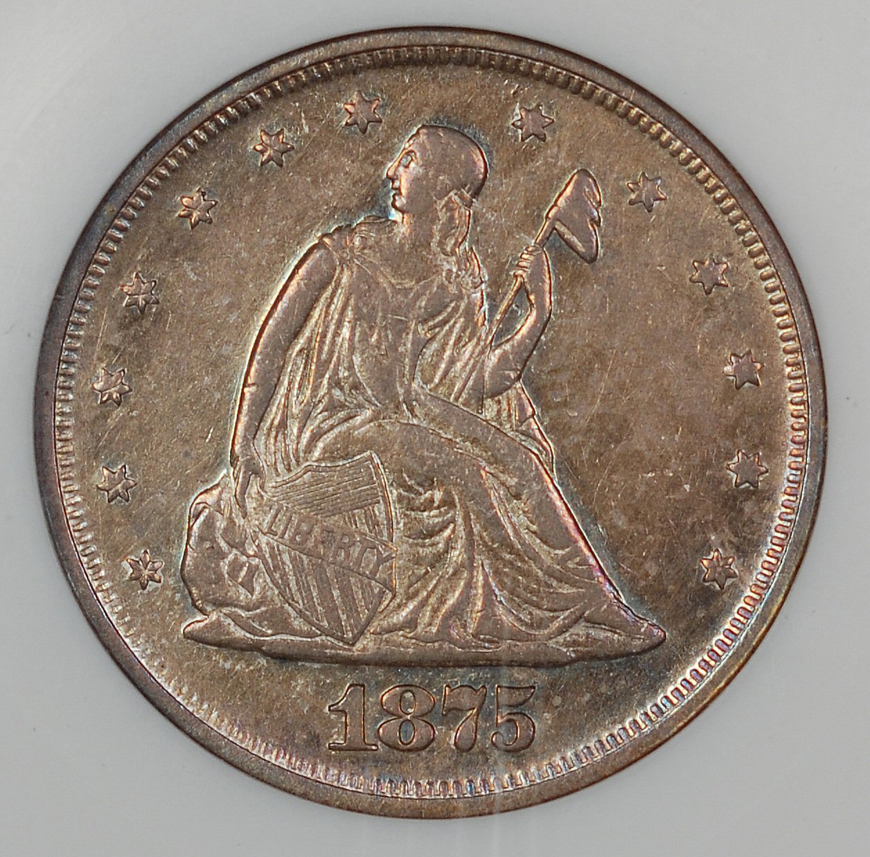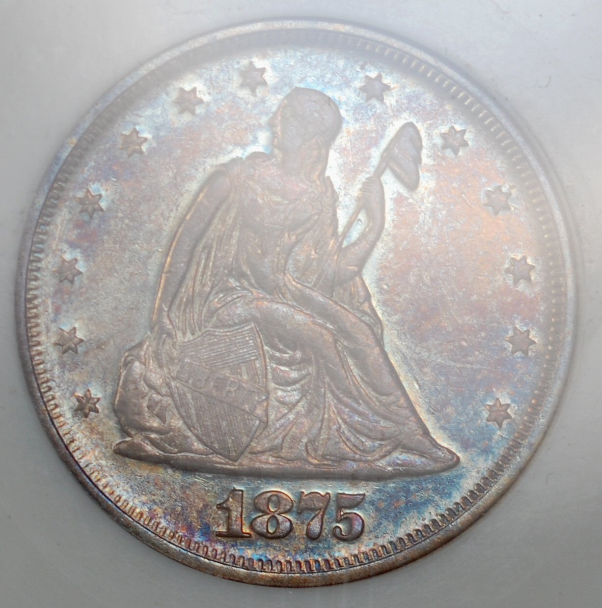 Another great numismatic history lesson in this thread; I don't have much to add so will just post pix of my 75-P, the last image is tilted to show off the color a little better.