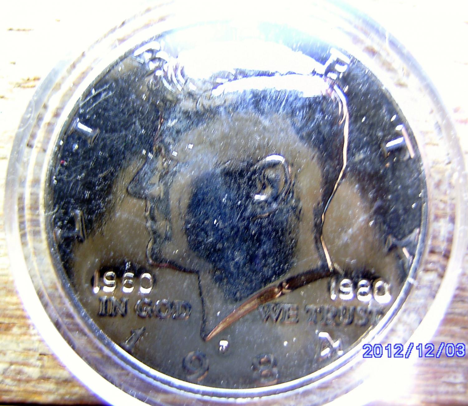 I've seen a bunch of these counter stamped halves while roll searching. There are varieties out there other than 1960-1980 and I've seen gold and silver (maybe chrome?) plated ones. I throw 'em back for someone else to find.