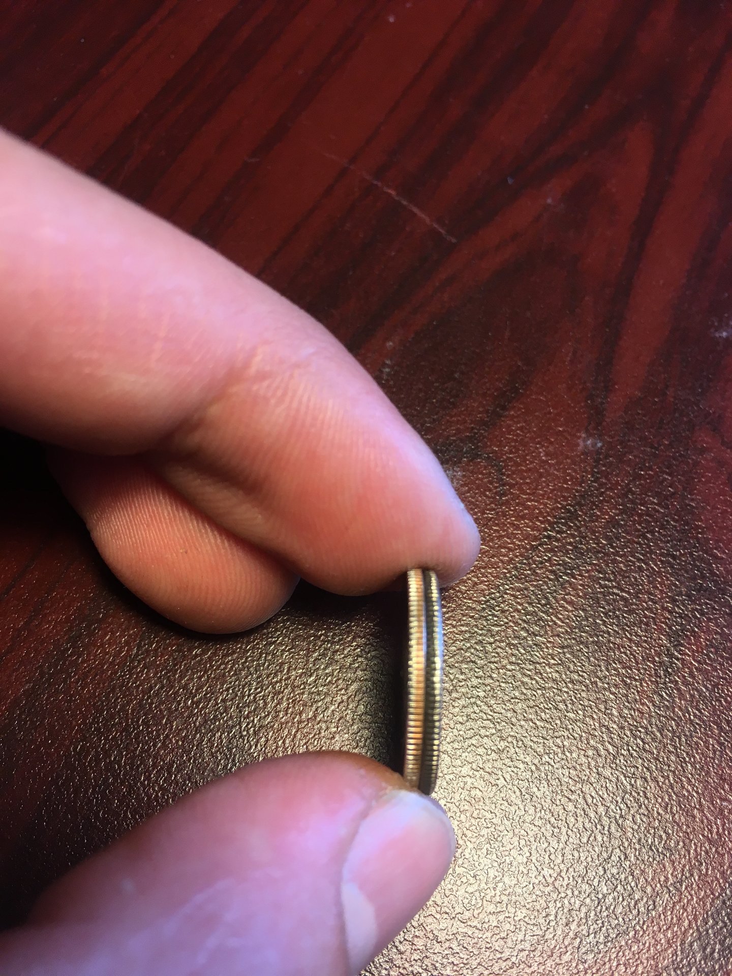 While coin roll hunting, I found a dime with a grey and silver edge, similar to a 40% half dollar. There is no copper color on the edge. Could this be an error?