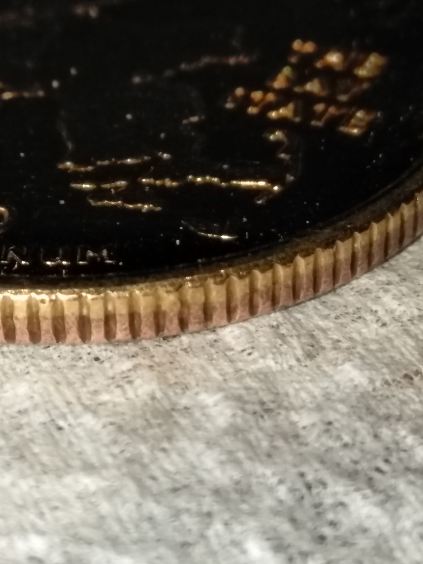 The coin would be worn all over and worn down if that was the case.it is in very good condition.and both sides are consistent in color but not the same color..and it's has a taller ridge than the other ones I have looked at..and it wieghs 5.85 grams on my scale..