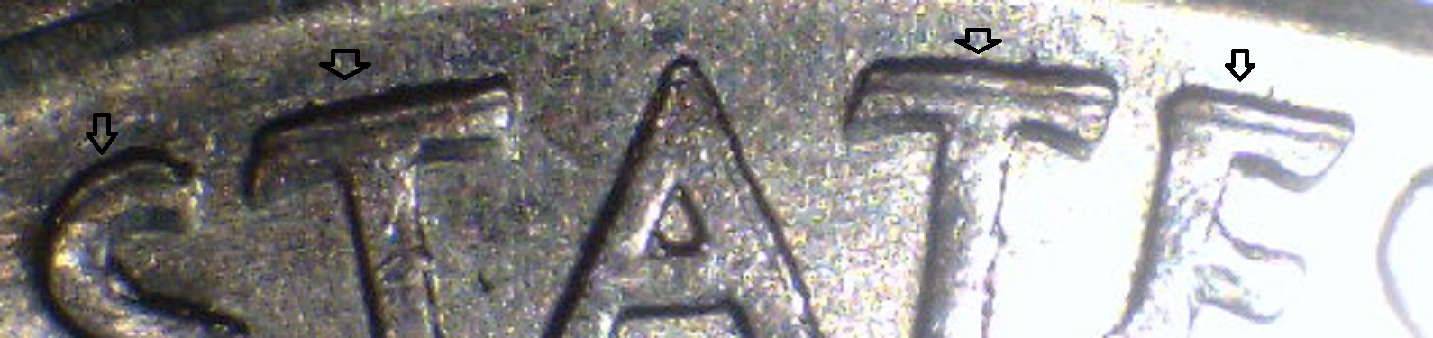 They appear to be die chips/breaks. I agree with Chris that the rest is mechanical doubling. Keep up the hunt!