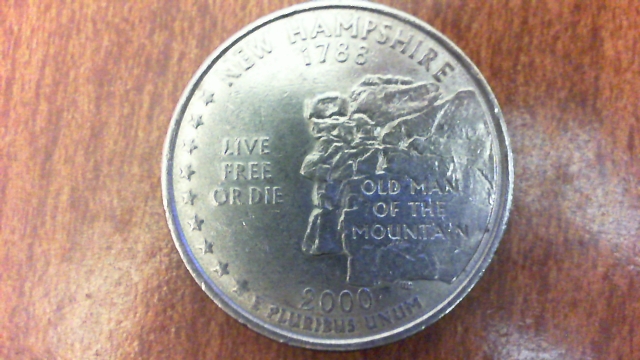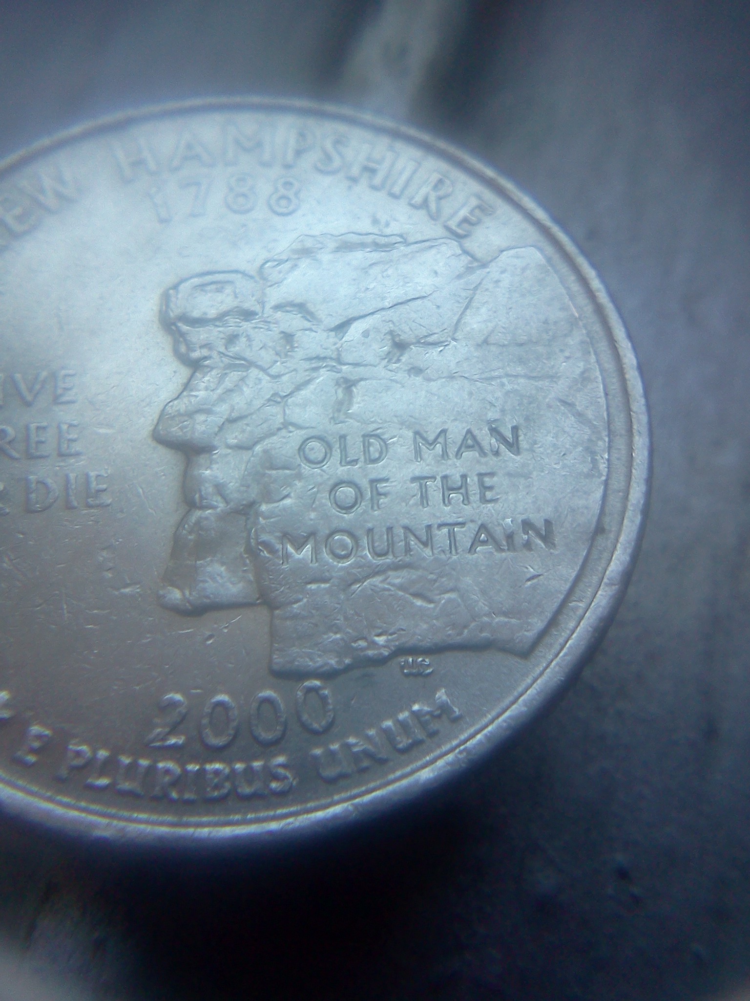 I don't think the letters in "Old Man of The Mountain" are raised. All the other letters on the coin are except these.