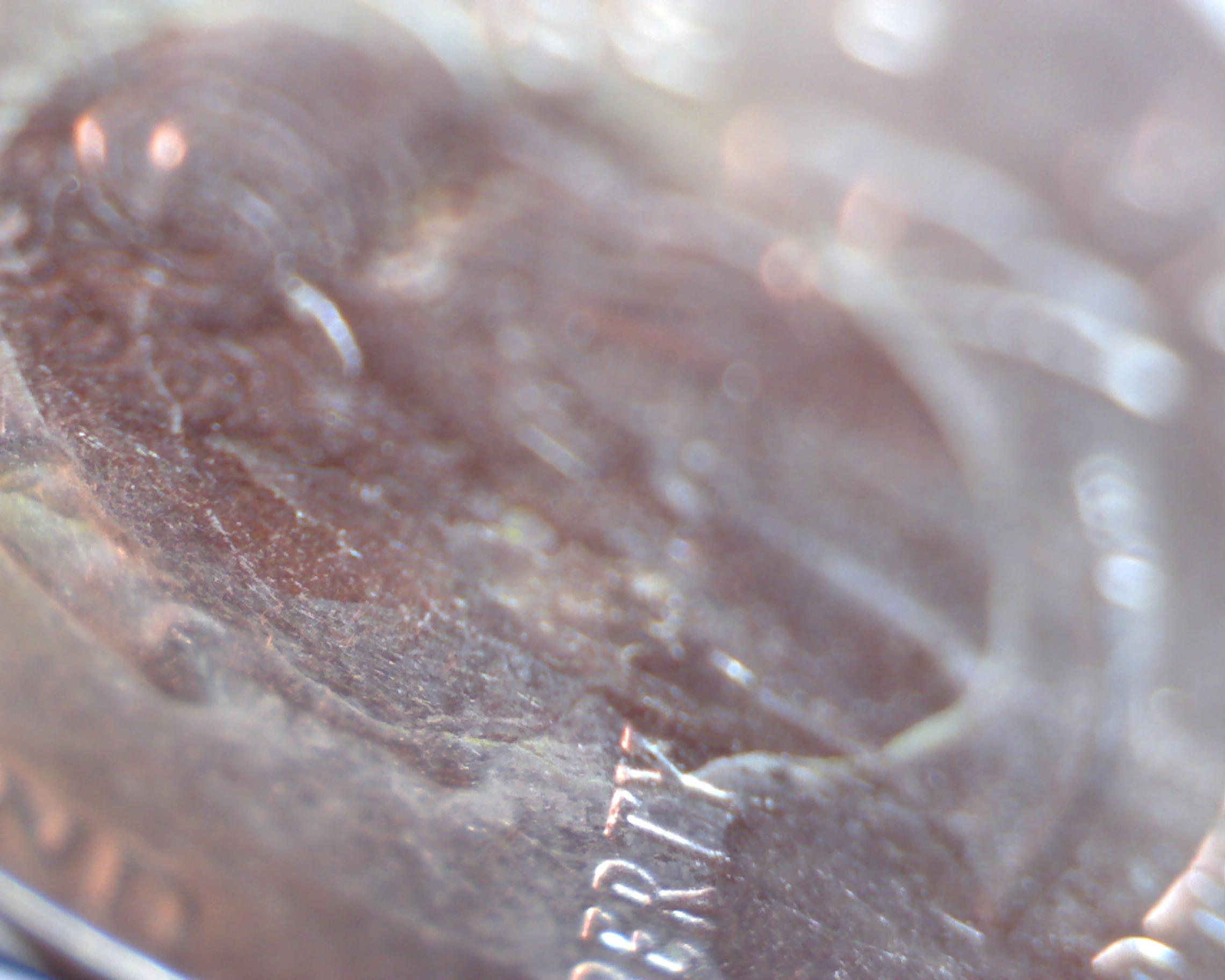 If pulled out of circulation (which it looks like), perhaps someone glued it to stick to something for a presentation of some type, a kid project, etc. Who knows but yeah, I wasn't going to guess glue but the other two that pointed it out, totally makes sense with the circular ring I see from the pics.