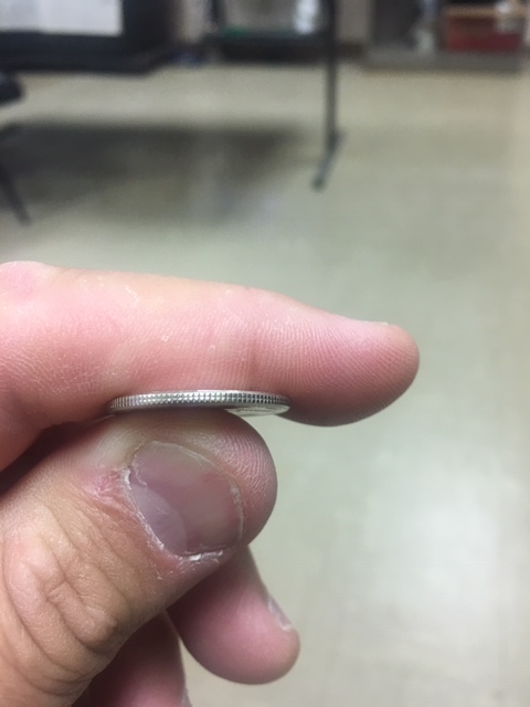 I found a Tennessee the other day with the same odd line in the center of the reeding. Thought it was a magicians coin but it isn't. Not sure why it is there? Any thoughts besides damage?