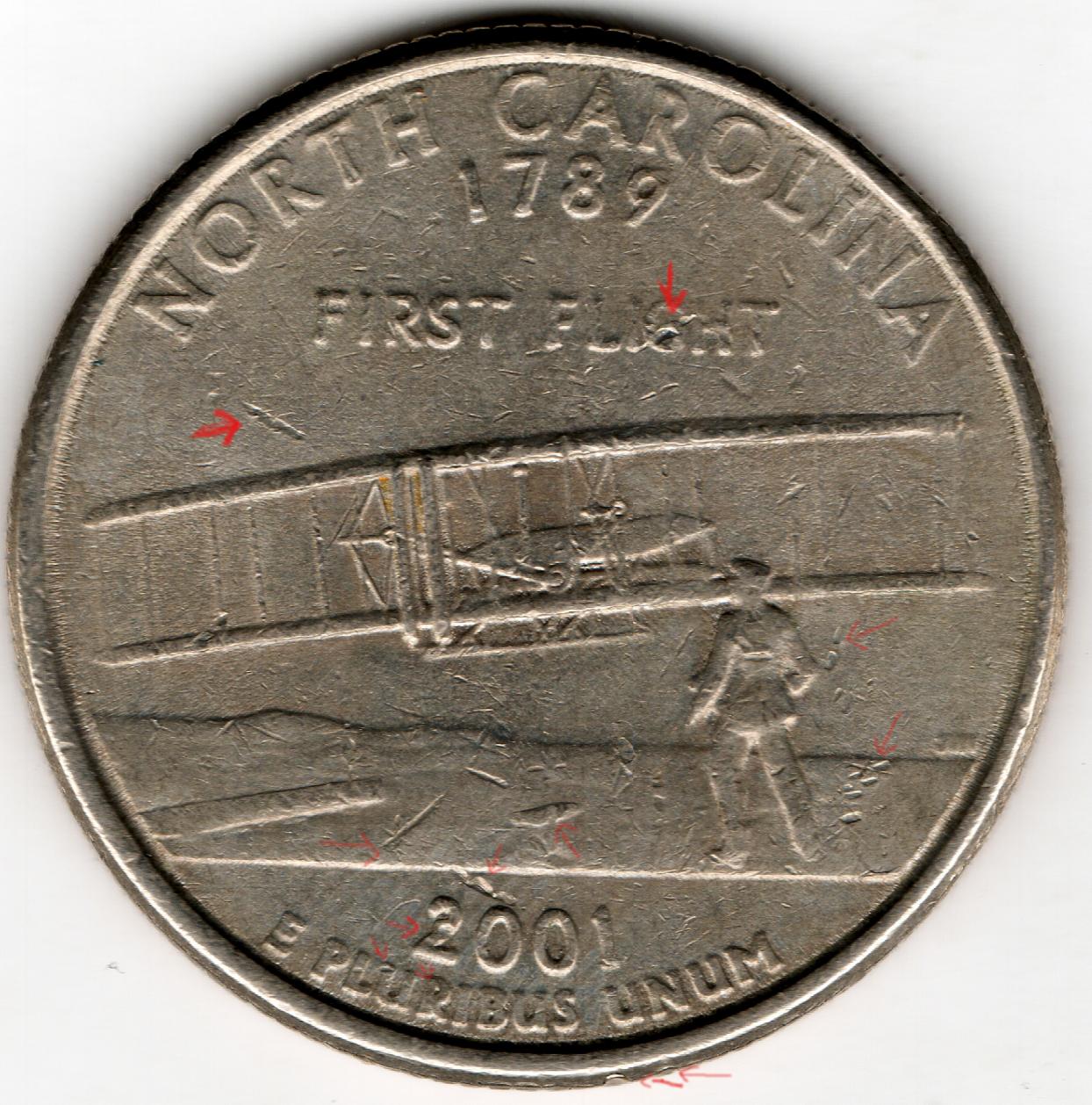 All of your arrows are pointing to circulation damage. I get the impression that you don't fully understand how a die clash happens and how it affects the planchets as they are struck afterward. If you would like an explanation, please let me know. Chris