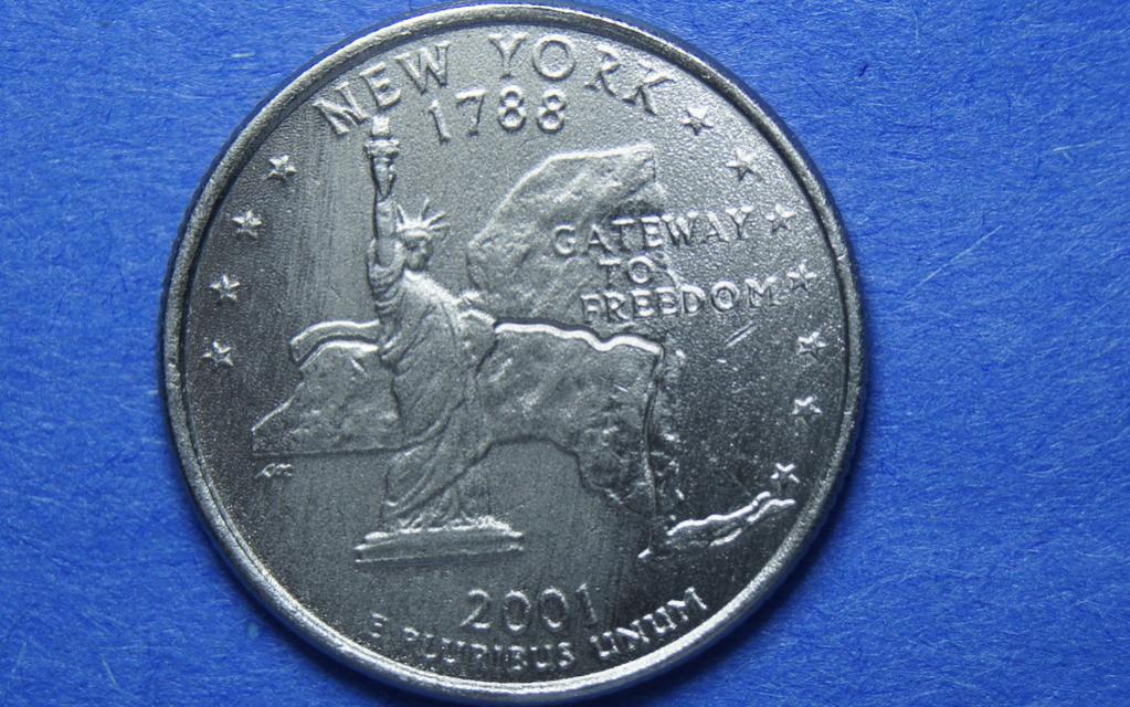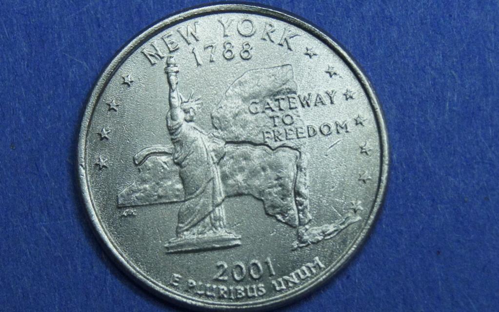 Hey guys take a look at this state quarter i think there is a little more to it than just struck through greased die.I think there is a faint image on the obverse of this coin.