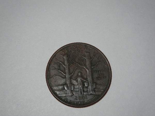 I have found the most unusual coin I have ever seen. I know nothing about coins but found what I thought was a rusty quarter in my change box. Then I looked closer and saw it was all copper. I did a google search and read about quarters and reacting the nickel off with chemicals. I investigated further and seen what the weight should be for a quarter. I work in a chemical plant that has a lab. I put the quarter on the lab scale and it read 5.56 oz. This is a 2001 Vermont quarter in excellent condition. Does anyone have any idea how this was done and perhaps the general value of this coin?