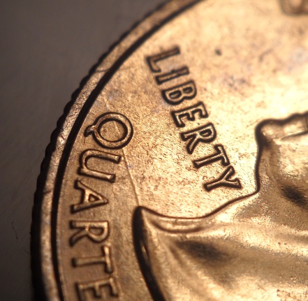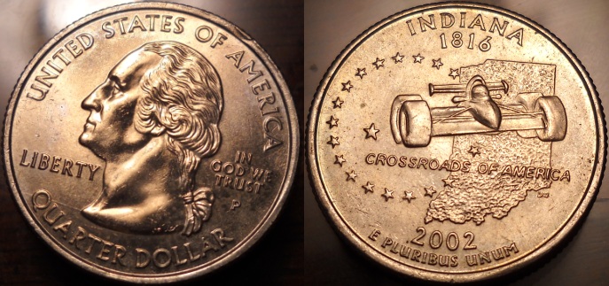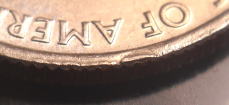Got this in tip change a few days ago, and when counting out my money for the night, saw the die crack on the obverse. Thought that was great except for the 'ding' in the upper right at about 1 o'clock. However, when I got home and checked the quarter under my loop I found that the reeding on the edge wasn't damaged! So the 'ding' wasn't a ding at all. Is it a small cud? The reverse also has what I think might be the third error, with the M in America being partially filled in. Not sure if that'd be considered a cud error, or a die crack error, or what. Aren't cud errors usually only called such when they involve the rim of the coin? The last A in America also looks odd, but I'm fairly certain that it's thin/wavy because of PMD. I can't under 10x see any clear dings on the A, and it doesn't appear to be raised at all, so I'm not certain what's causing it. It bothered me to the point that I went on a hunt for other Indiana quarters to compare the A's, and the one on this quarter certainly is thinner and oddly shaped. So, how many errors are really on this coin, and is there any sort of premium for coins that have multiple errors? I know certain errors are worth more and others are rarely collected, but this is my first coin with at least two flaws that aren't PMD. Not looking to sell it really, but curious as to what it may be worth over face value.