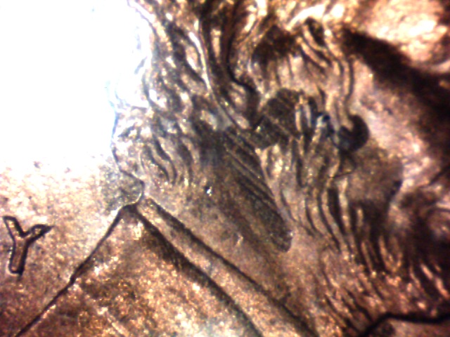 I found a 2002 penny in a roll from the bank. Around the jaw and ear there is nothing. I tried to get a close up on the area (best I could do with what i have). Other than this the coin looks normal. Any ideas what this is? I appreciate all the help that has been given to me so far. I joined only 2 days ago! Goff