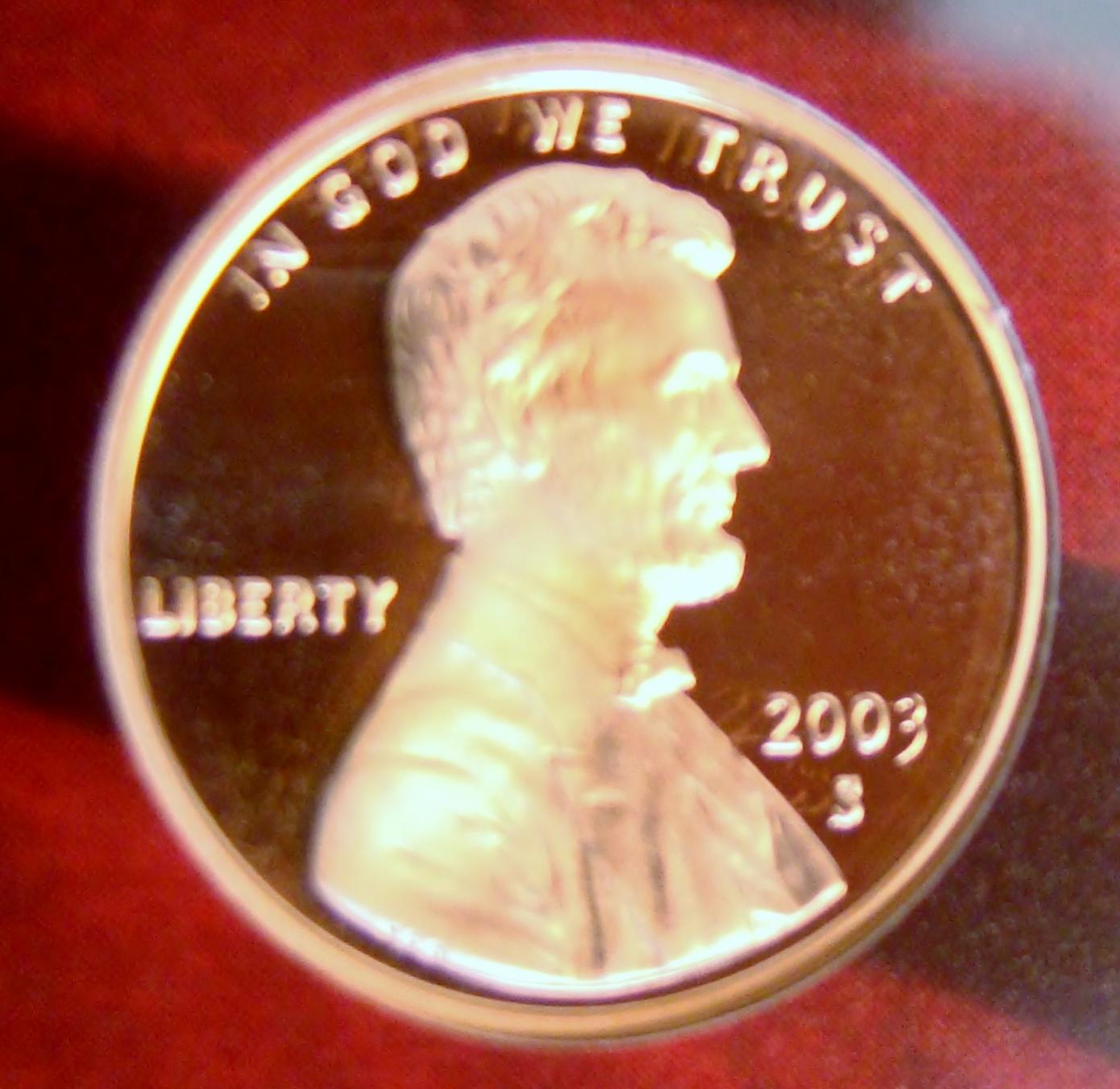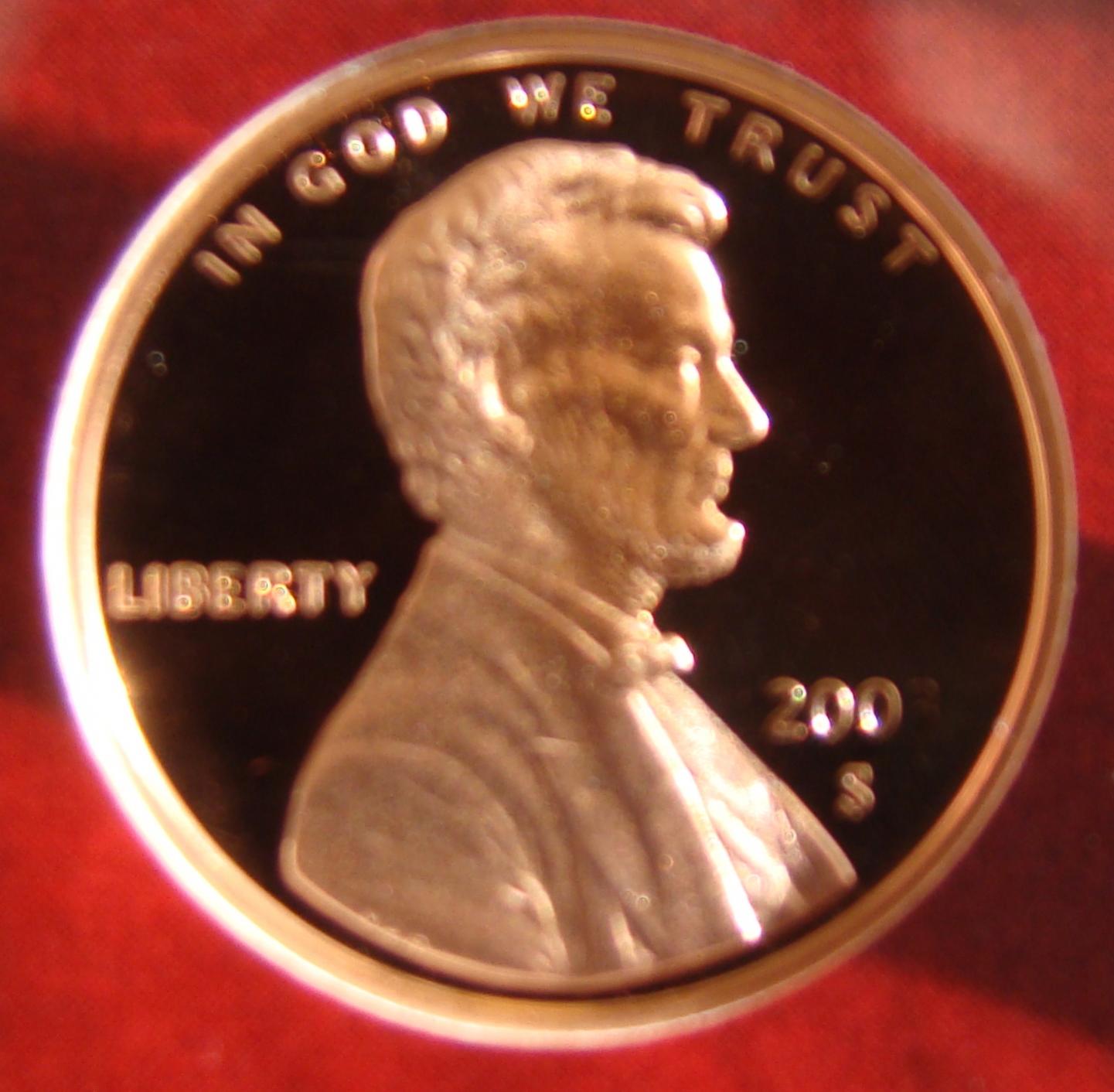 iver been wondering what causes this effect. it happens on more than one coin in this particular 2003 proof set. i will work on taking better pictures of this here Lincoln and the others with this disappearing or phantom 3 could it just be the light through the case?