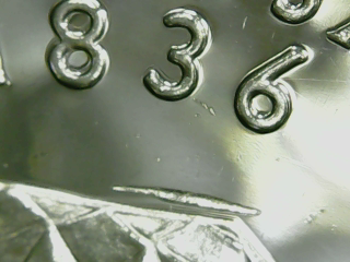 If you're talking about the area below the "836" in the photos, it's not a die crack. It appears to be a 'struck thru' error - a random piece of the planchet from another coin was on the surface of the planchet when it was struck.