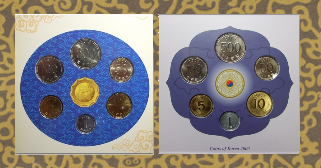 Thanks - that's very useful information! I'll be on the lookout for that one, but if you ever come across it, please let me know! And, do you think the Mint had a proof-like strike for the 2005 year, too? I see what looks like frosted devices / cameo (especially on the 500 Won coin), with very little to no cartwheel luster, which is very different from the other years' mint sets (besides the one for 2000, which I haven't come across yet). Those other sets have a strong and noticeable cartwheel beaming out. This set does not.