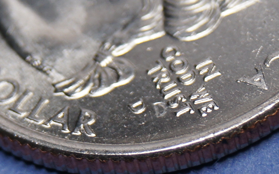 It is barely (!) raised above the surface of the field, and it is also about the same size as the "D" in IGWT, not the mintmark. I still think it might be a retained dropped element. Chris