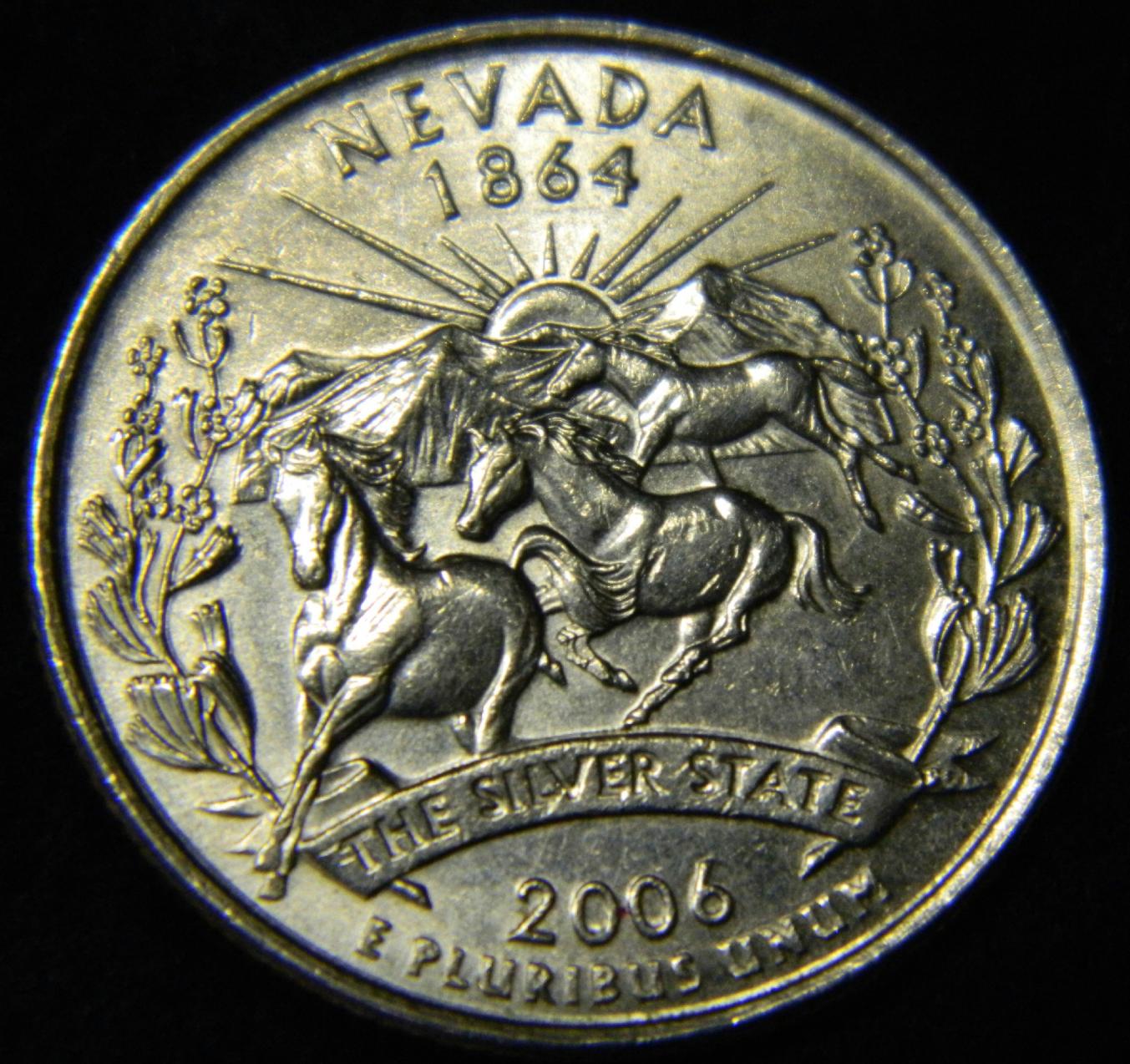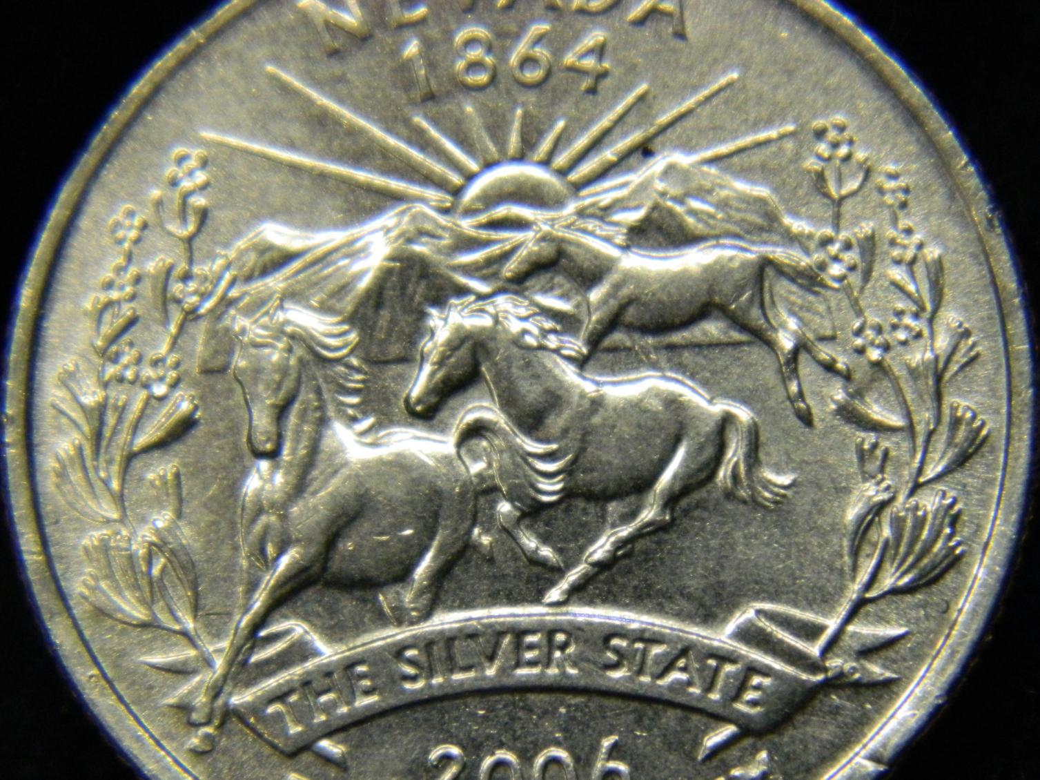 This is called a die chip. these Nevada quarters are bad for getting chipped places in the dies for these quarters. I have some of them with really big die chips between the last horses legs and others with chips about everywhere. actually our state quarters for about every state are known to have numerous die chips.when a piece of the coin die breaks loose from the die and falls out this area gets filled in with the coins metal and is called a die break. back when I was getting rolls of the quarters from the bank I kept about every one I found with big die cracks or die chips and die gouges so now I have rolls of some of them from the same dies.