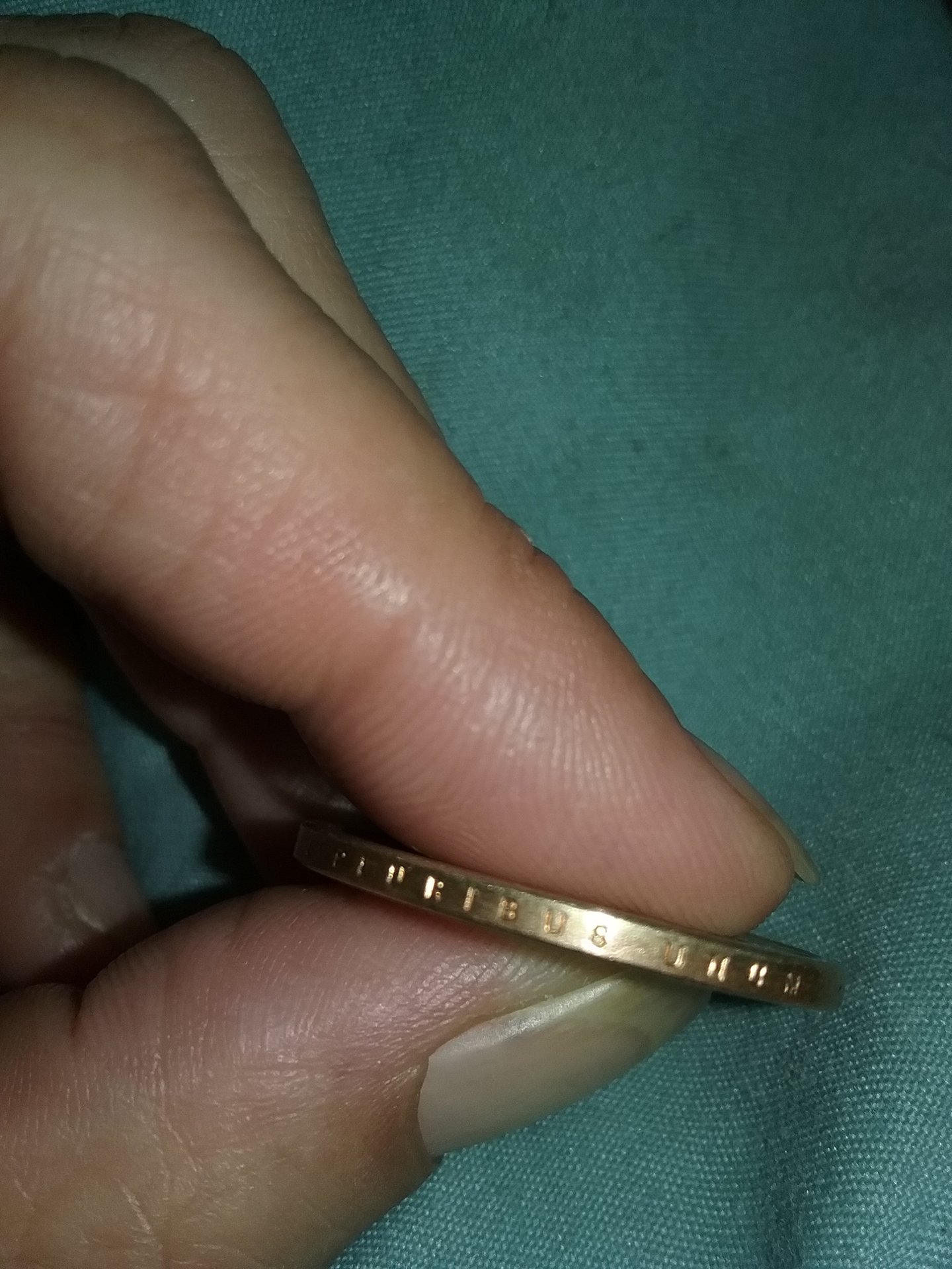 That is actually the edge of the coin. There have been found different issues concerning Edge Lettering such as Double or Overlapping lettering. Not a perfect process.