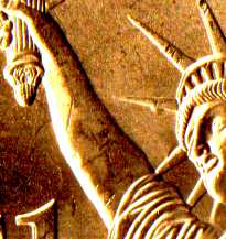 I found 2 of these in the same roll Still working out the kinks on my scanner(sorry bout the pic) but Ive seen this error on the net before just cant remember what it is? the marks are in the same spots looks like a strike through thread on the top liberty spike actually on 2 of the spikes in the armpit too and on top of the 1 is this a strike through or a double? the scan doesnt do it justice...its very noticable in hand should I send it in for grading?