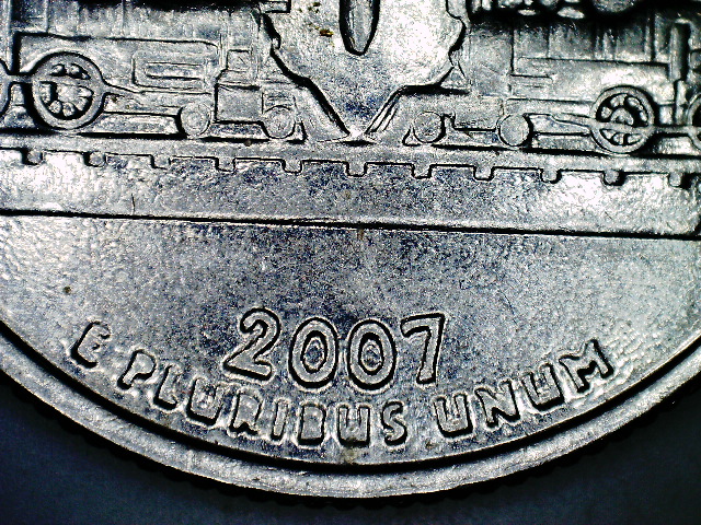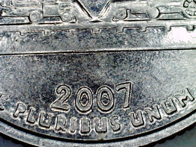 Die chips are very common on the UT SQ's. About 7 years ago, I searched several $100 Uncirculated bags I ordered from the Mint, and I found dozens of them with die chips in many different places on the engines. They're worth 25c each. Your coin appears to be well-circulated, so it's only worth 22c. Chris