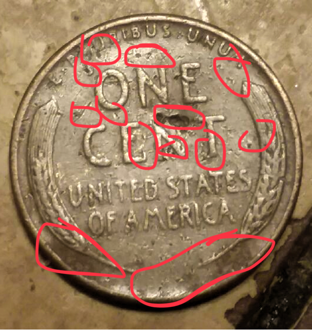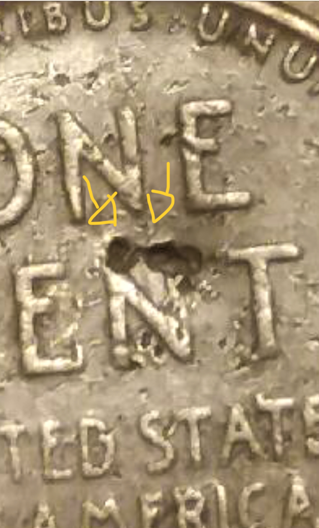 If you’re talking about the Cent, there are no errors on it. First of all, look at the coin as a whole. What do you see? I see a coin that’s been heavily circulated and damaged all over it. Red circles show damage.