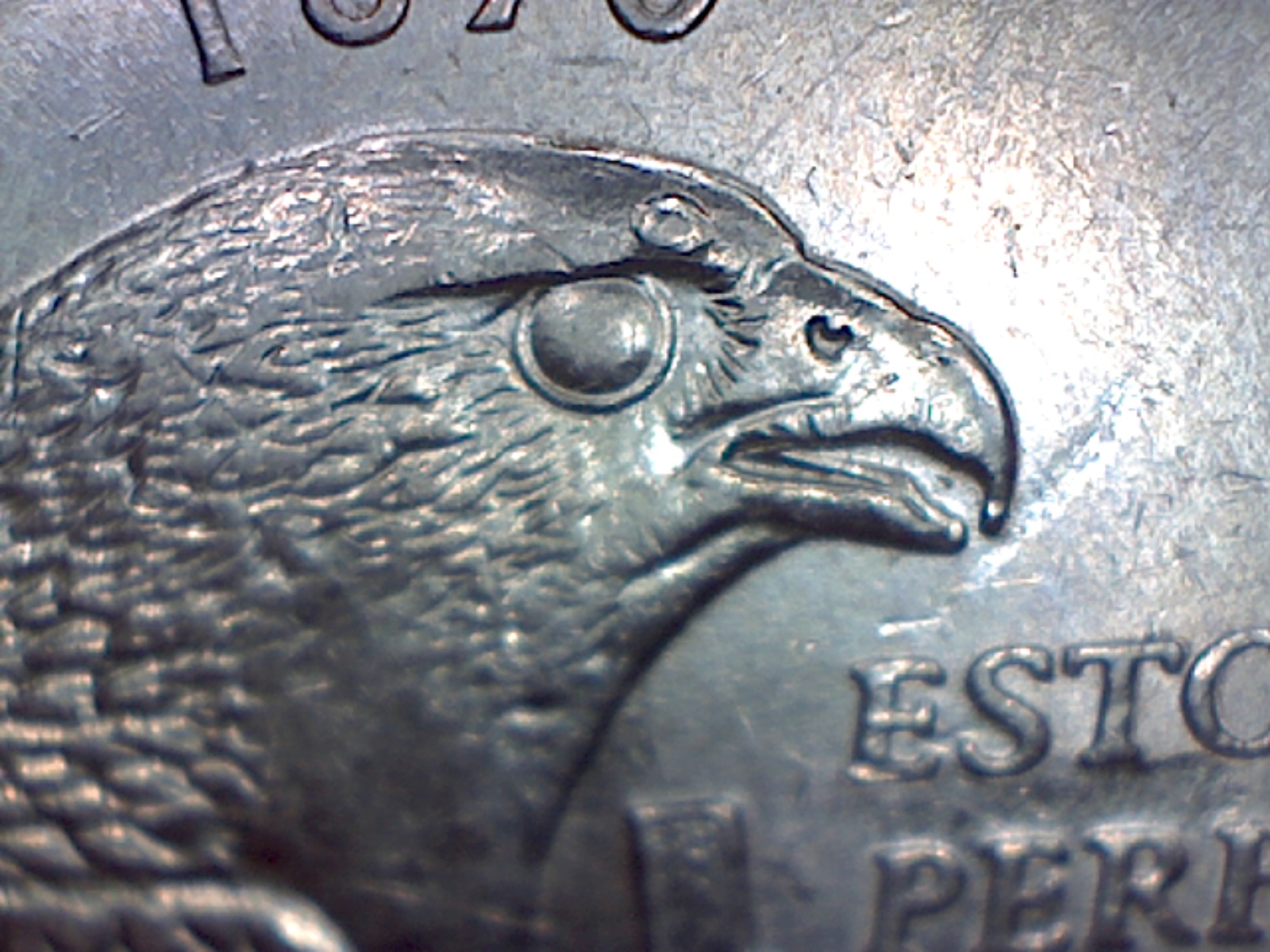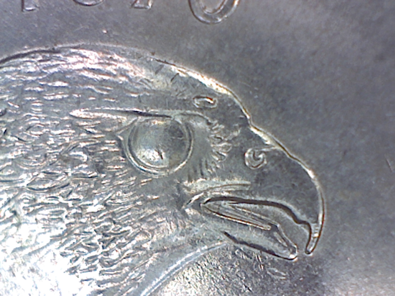 Ill be home at 430. Ill take more and hopefully better pics for ya chris. Ill try and locate the other less extreme coin as well. Its a die chip for sure and its a falcon.