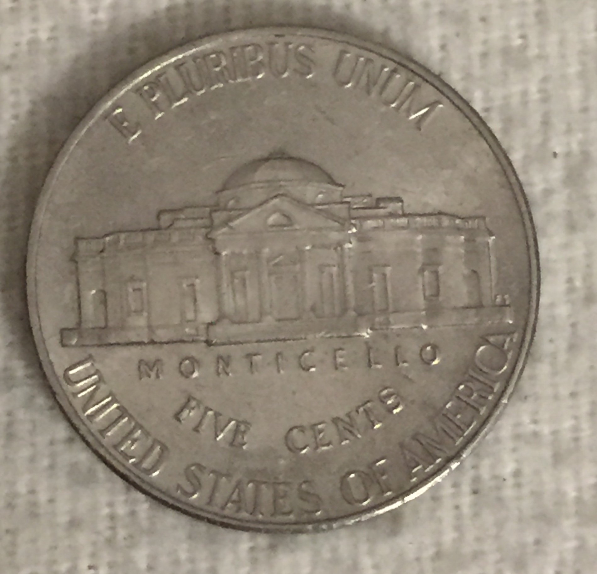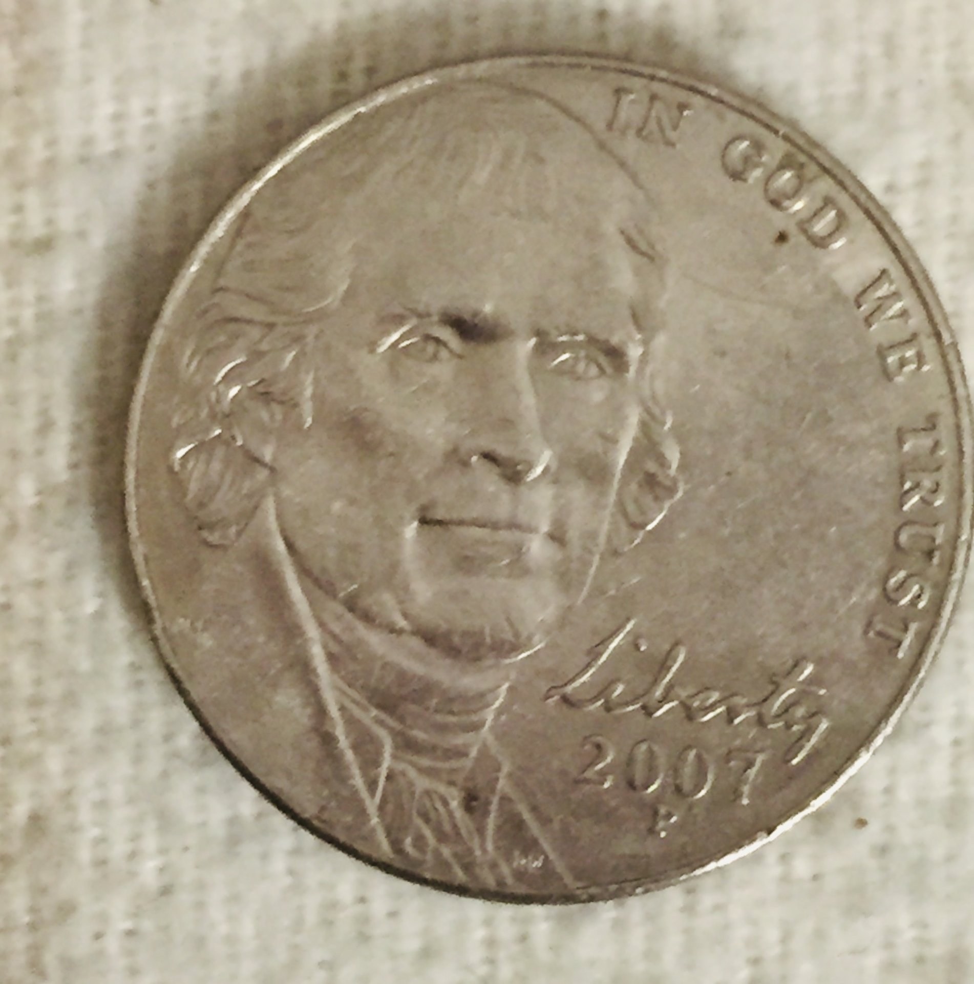 Jefferson looks like he is wearing an earring. M in Monticello is dd.