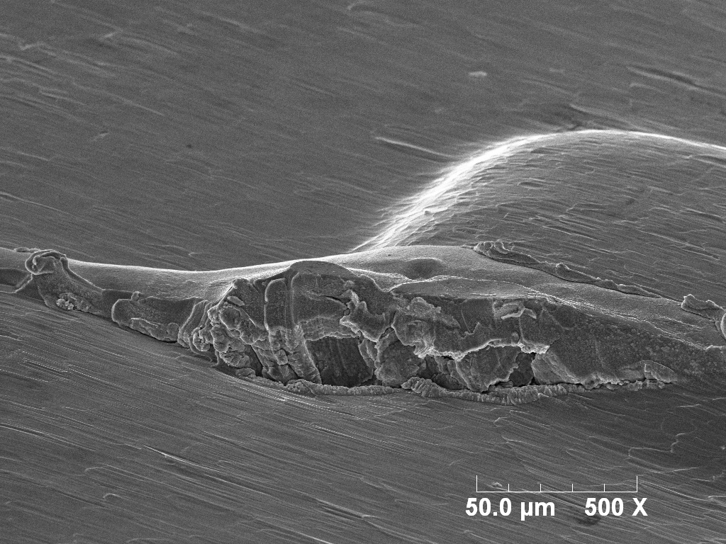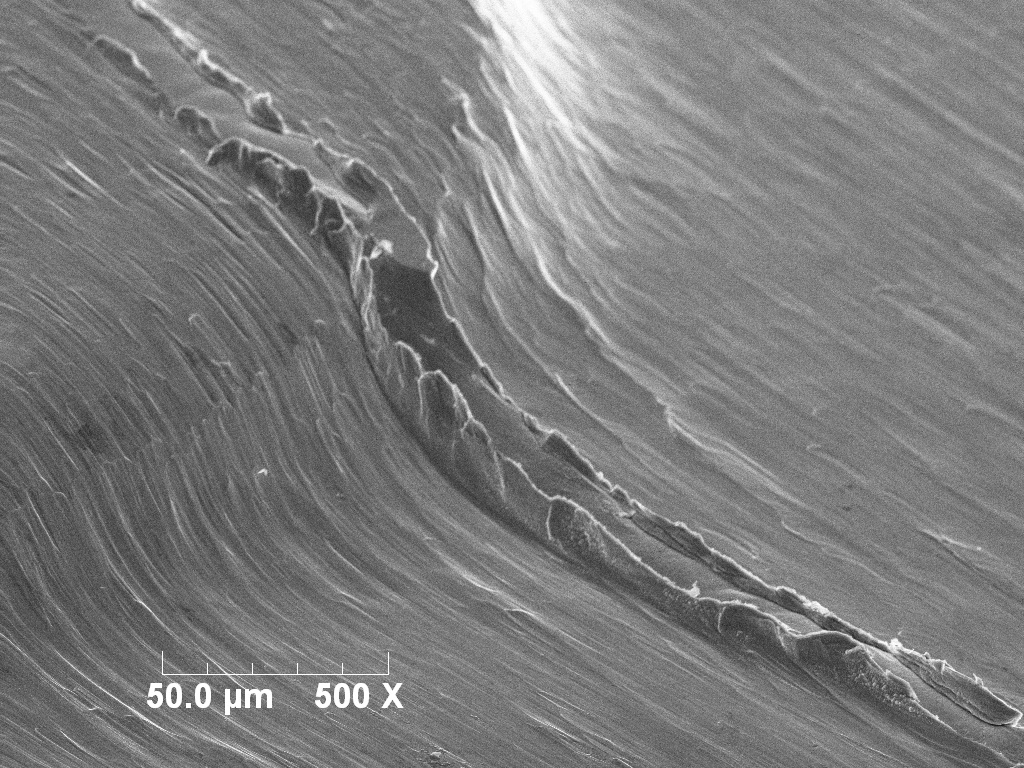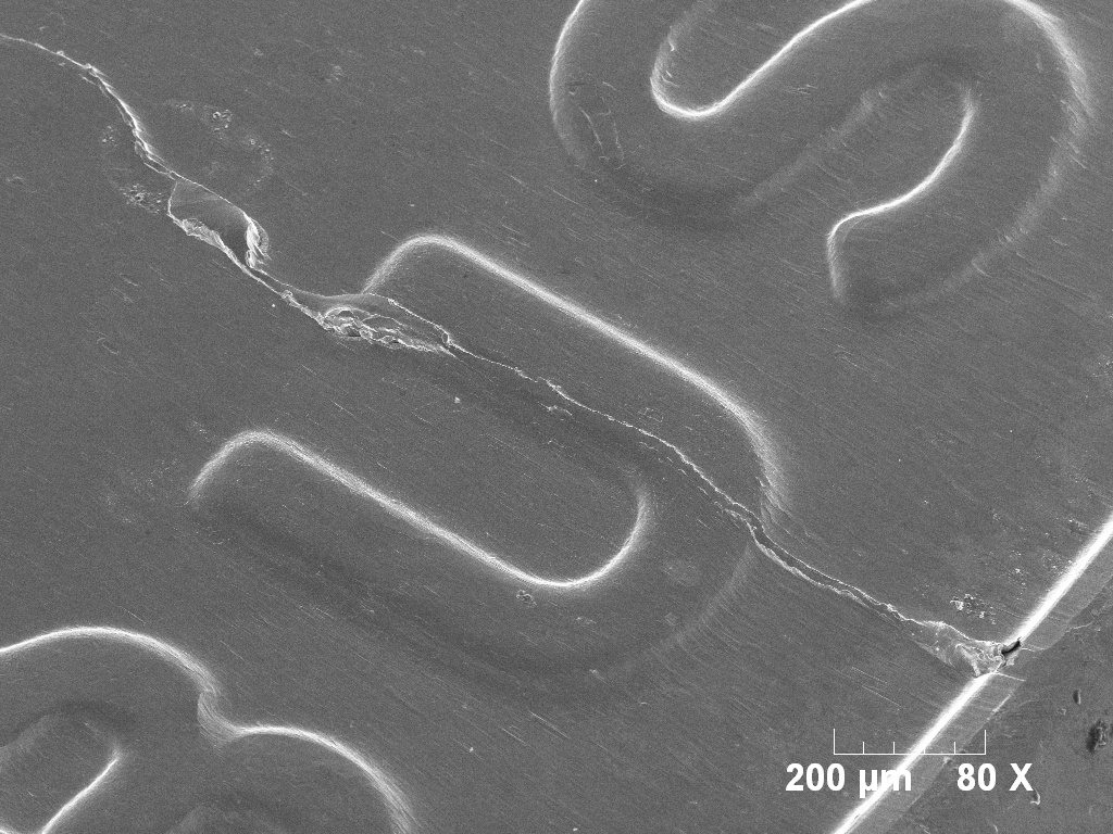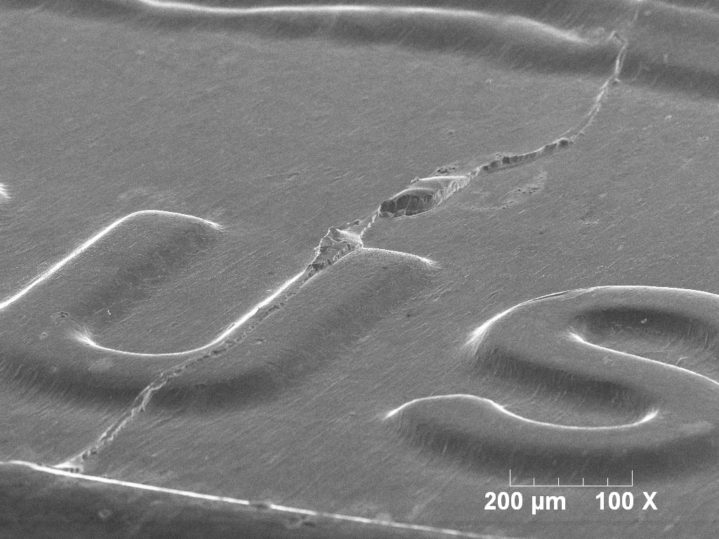 I finally got around to taking a good look at my boot strap die break error. I used one of the scanning electron microscopes (SEM) at my work to photograph it. I haven't ever seen an SEM image of this error so this may be a first. Let me know what you think.
