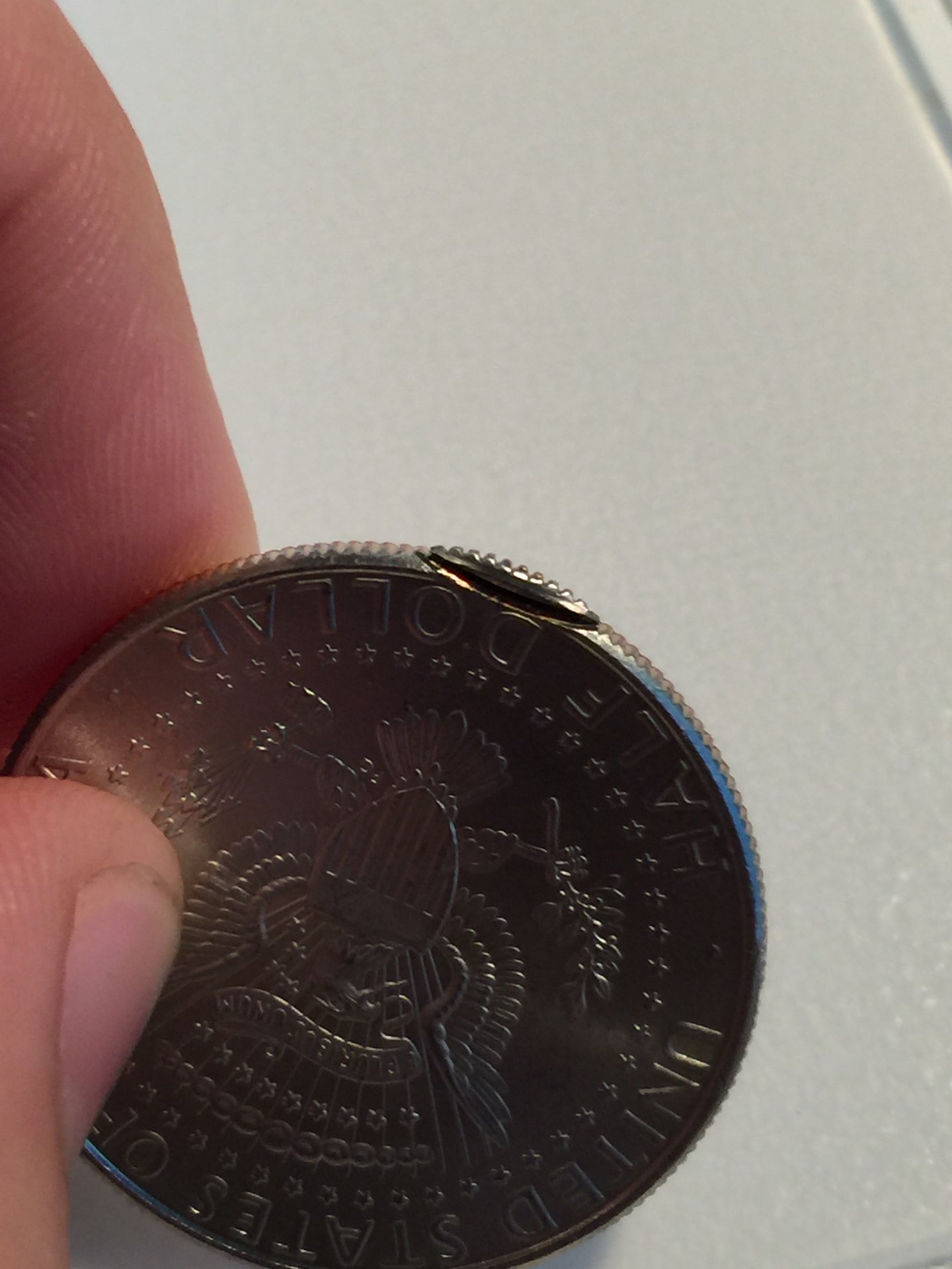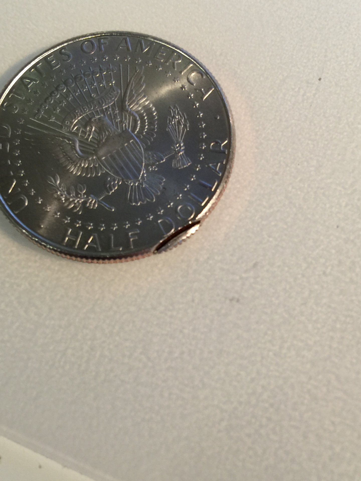 thank you for your help. but the "clip" on the edge is curved and I lined it up with another half dollar and it's the same cure