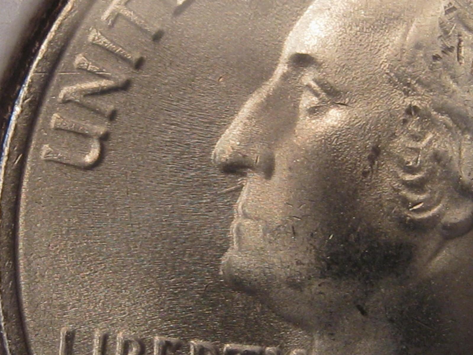 Found this die gouge on 2 quarters so far below the nose of Washington