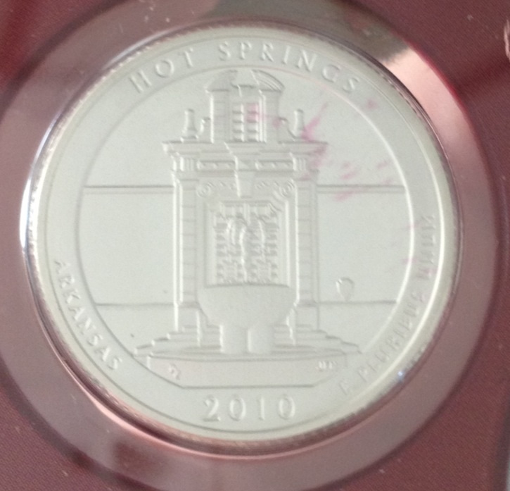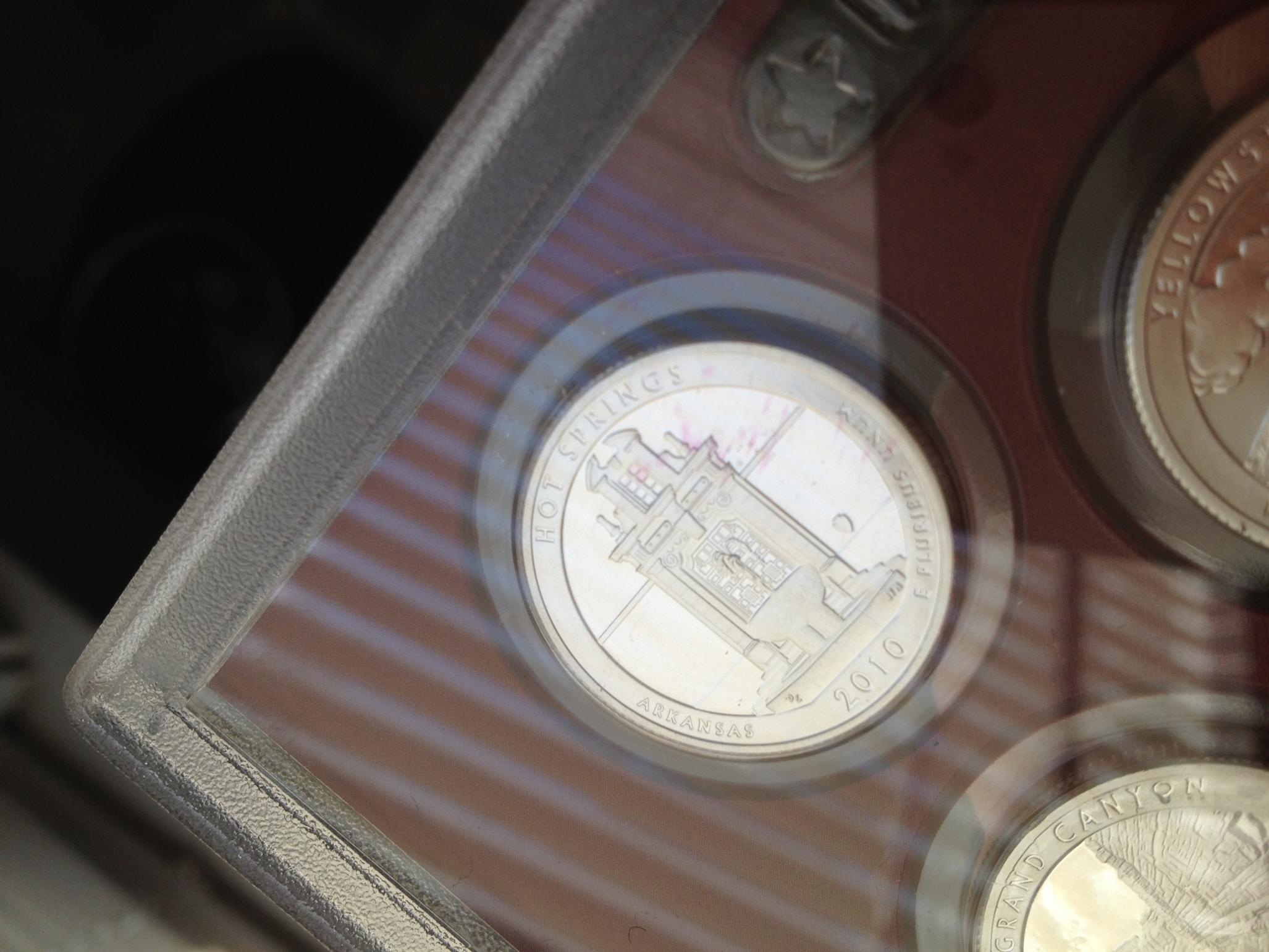 Just went and looked at some of my coins and I came across this. Very ugly gold toning and red something on the Hot Springs. Anyone else have this problem?