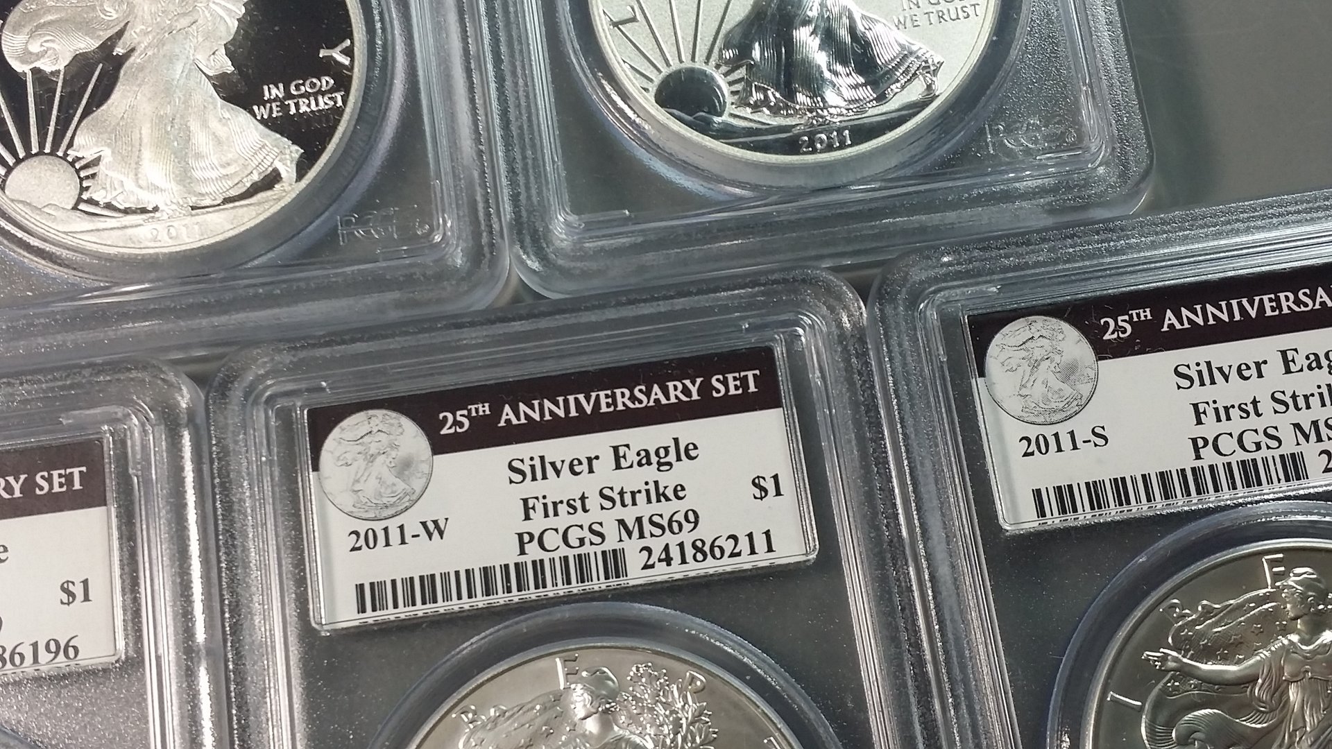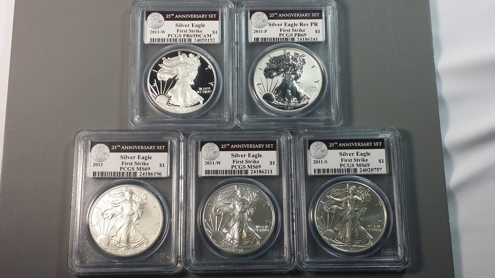 If people actually open their minds and do some research they will realize that The S uncirculated minted coin and the reverse proof are the 3rd lowest minted coin in the entire silver eagle program, with only 100,000 minted for both of those coins. The 10th anniversary being the lowest minted coin at 30,125 sets were sold, making the silver proof especially attractive. GreatCollections sold a PCGS Proof 70 Deep Cameo 1995-W silver American Eagle for $86,654.70. At the time, only eight coins had been assigned that perfect grade by the PCGS company, i'm not sure how many are PR70 currently with PCGS but NGC has graded 390 Proof 70's as of today. (Proof 69 Deep Cameo silver American Eagles sell for about $4,000 each.) Most collectors seem to forget about the series until the next great Anniversary set comes out, which will happen later this year. So my best guess is that your investment for the 25th anniversary eagle set will increase in value as soon as the 30th anniversary eagle set is released. There are 19,465 2011 25th anniversary reverse proof 70's and 8,539 PF69'. There are 19,813 2011 25th anniversary S MS70's and 8,315 MS69's I know there are a lot of people who don't like graded coins but I can see value in a graded coin, But not so much the special labels. I focus on the grade.