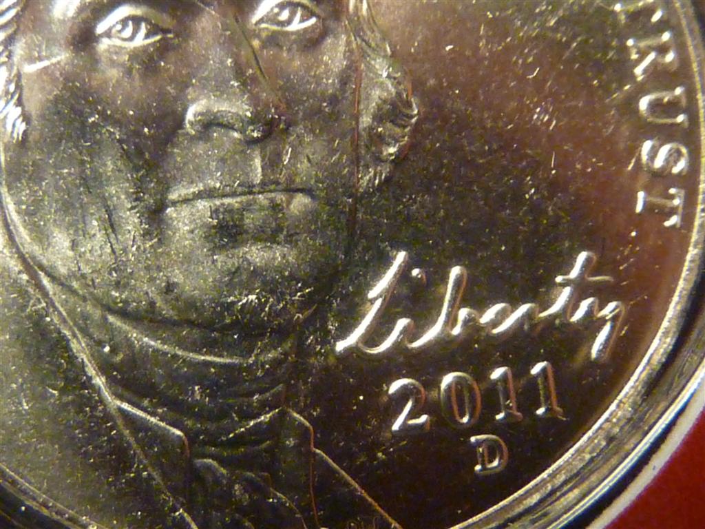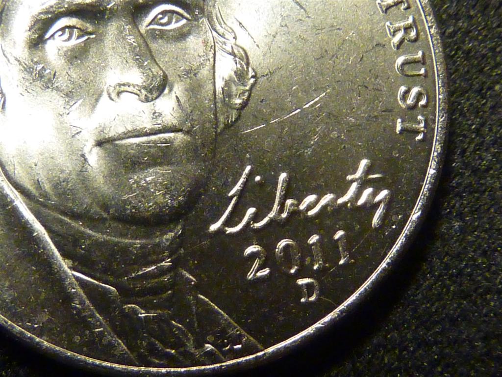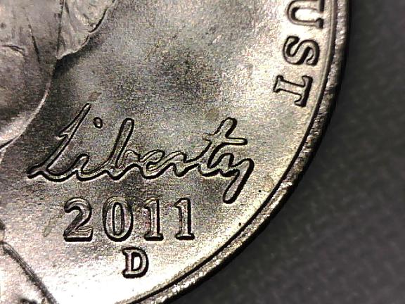 Something going on with this 2011 D Nickel. The Liberty and date on the obverse. The Monticello and Five Cents on the reverse. I have also posted another nickel with red background for comparison. Thanks for professional thoughts!!