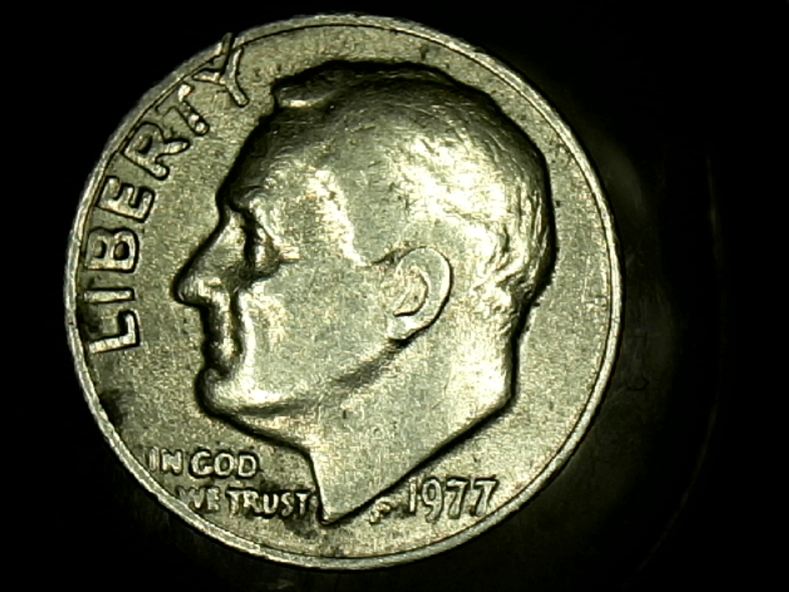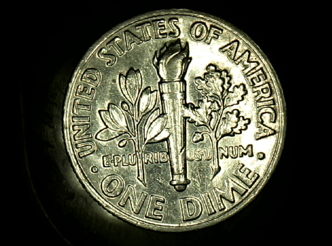On the reverse side not the head side. And I call it the torch idk if everyone else does but it is in the middle of the olive branches if you look at the base of the torch on the left side you can see it starts at the top left corner of the D in Dime and goes up and around the torch and almost makes it to the leg of the R.