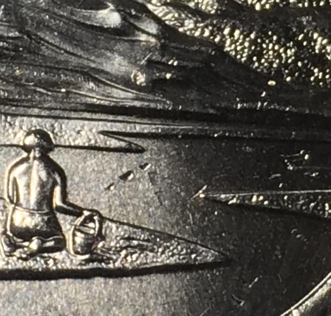 this coin has 3 lamination errors on it that looks like the kid is skipping rocks wondering if I am right on the lamination call ?they are small pits in the coin really don't think this is post mint damage its kinda neat
