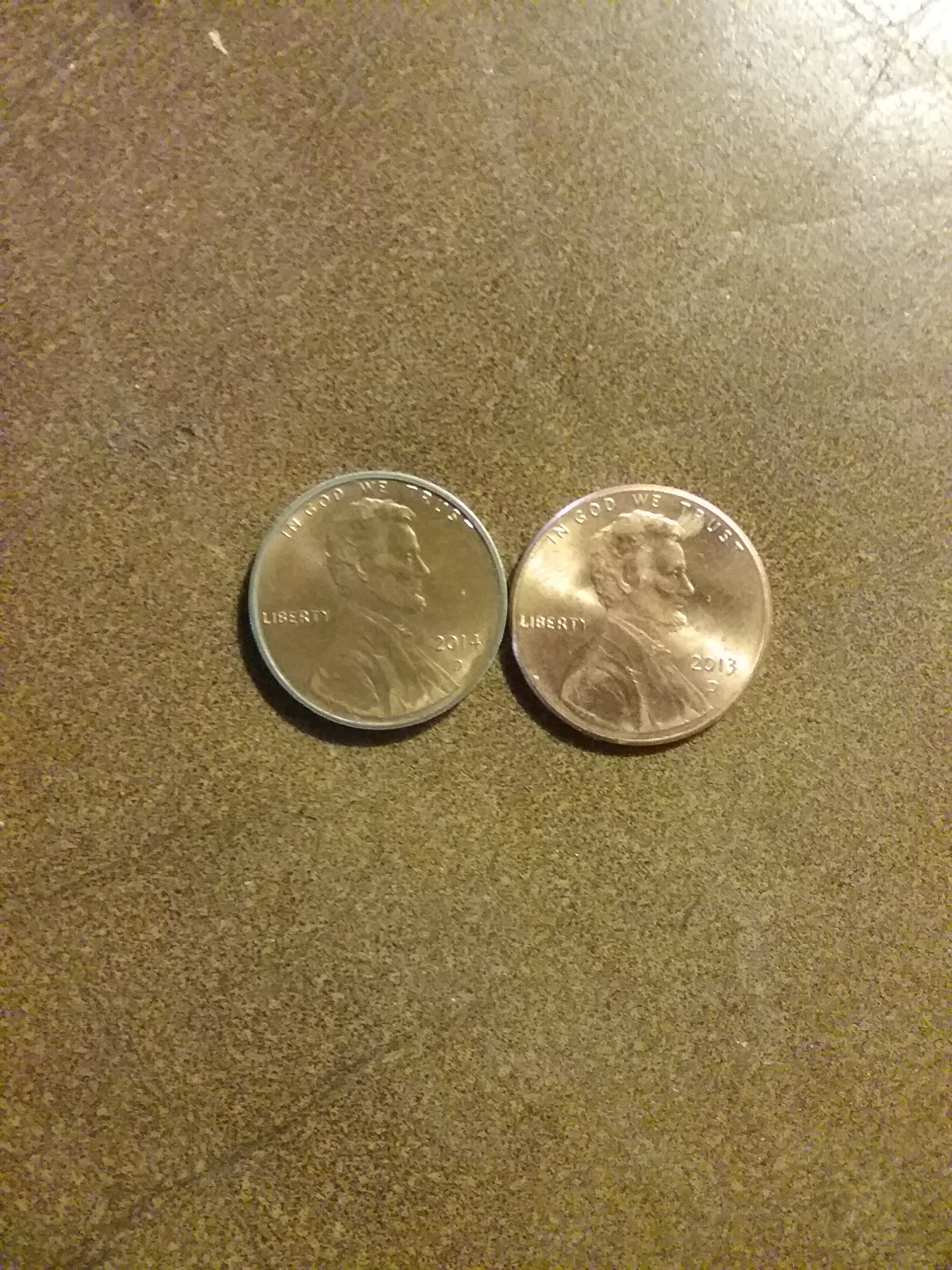 The presence of exposed zinc on the edge is also informative. Unlike 1943 cents, which were plated BEFORE being punched out of strip, modern cents are plated AFTER blanking.